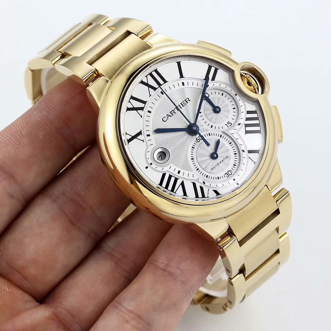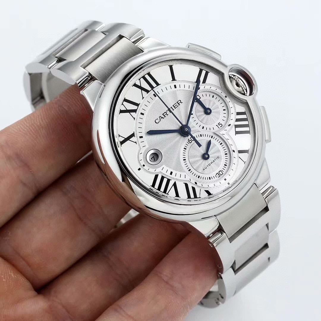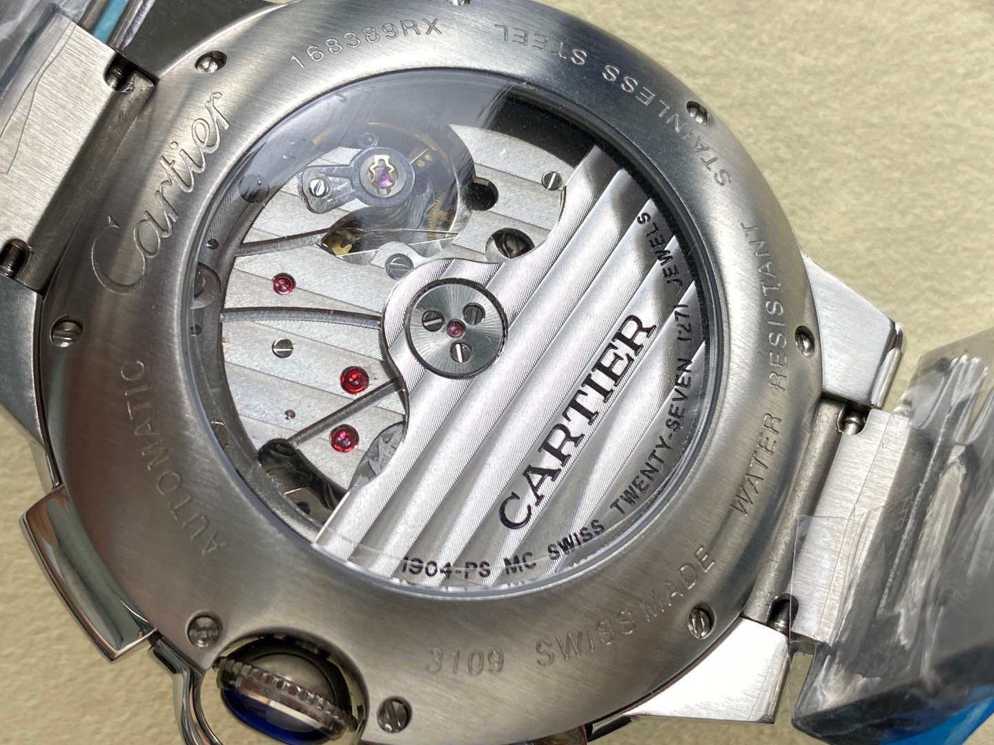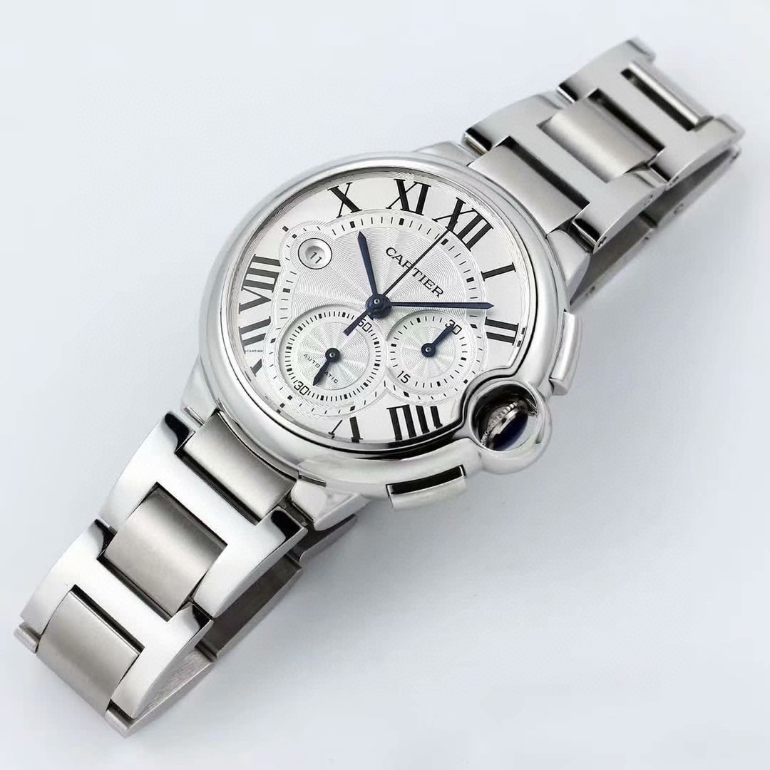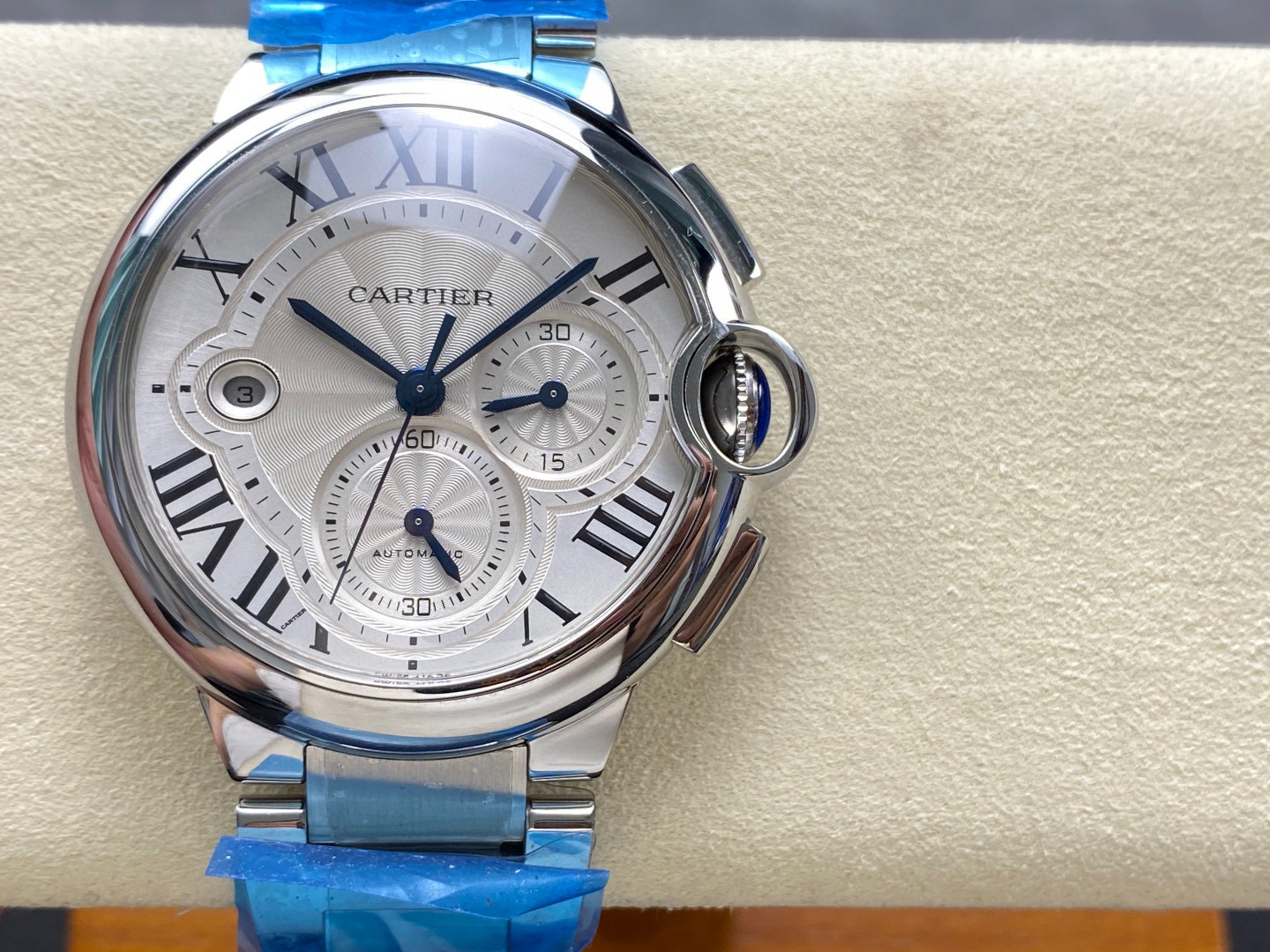 NOOB official精品 卡地亚 蓝气球系列 计时机械腕表 V5S升级版 主要升级为最新原版与一致的以下几点️:机芯采用7750六秒计时机芯(纯机芯定制,不改任何结构与功能)复刻原装Cal.8101.MC机芯️机芯宝石均为真宝石,搭配与最新原版一致的1904实心陀片️:双层立体字面,字面的纹路,颜色均与原装一致️:日历的字体,大小,颜色均与最新原版一致!使之整体效果更加与正品无限接近NOOB official boutique Cartier Blue Balloon series timing mechanical watch V5S upgraded version is mainly upgraded to the latest original version and consistent with the following points: the movement adopts a 7750 six second timing movement (pure movement customization, without changing any structure or function), replicating the original Cal.8101.MC movement. The gemstones of the movement are all real gemstones, matched with 1904 solid tourbillon that is consistent with the latest original version. The double-layer three-dimensional literal, literal pattern, color are consistent with the original version. The font, size, and color of the calendar are consistent with the latest original version! Make the overall effect closer to the genuine product infinitely