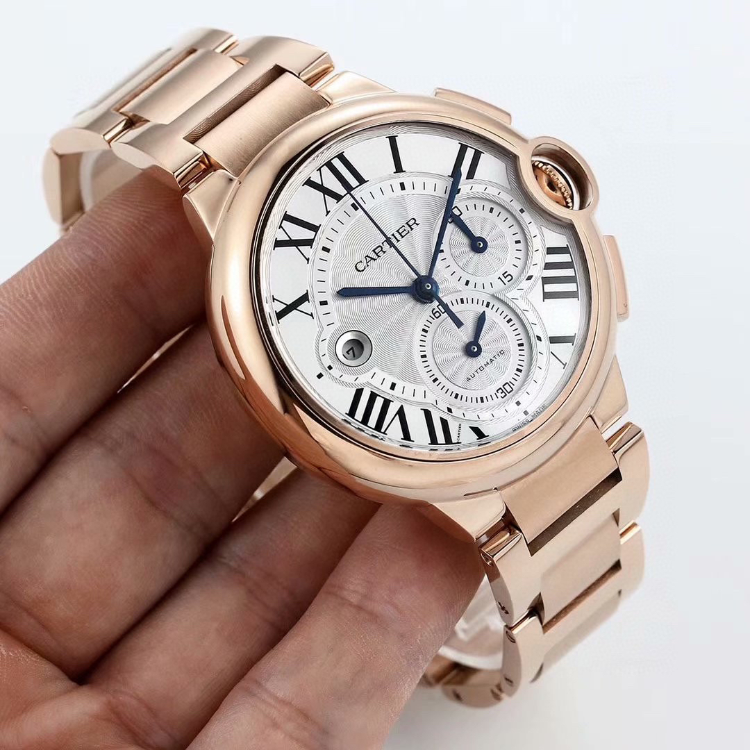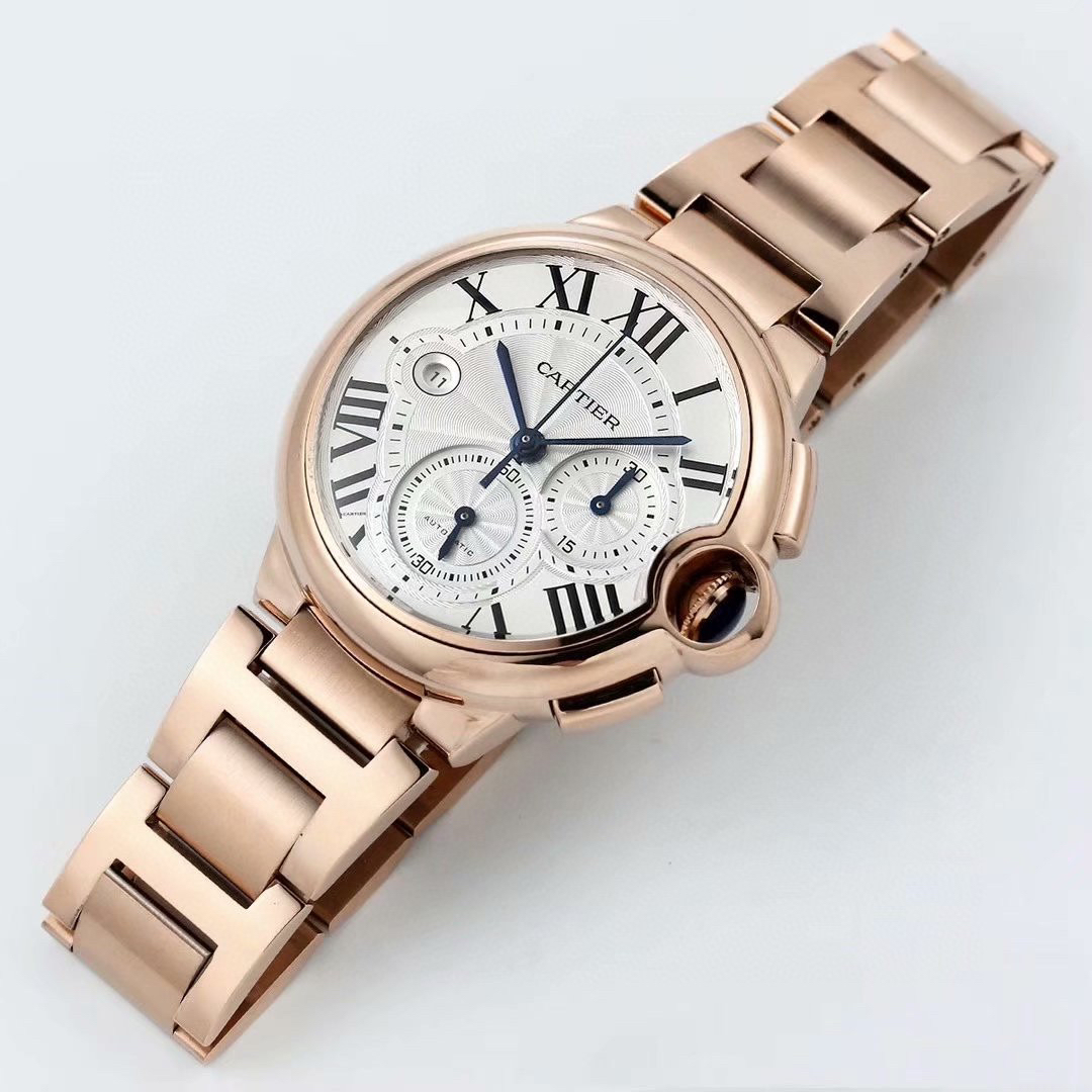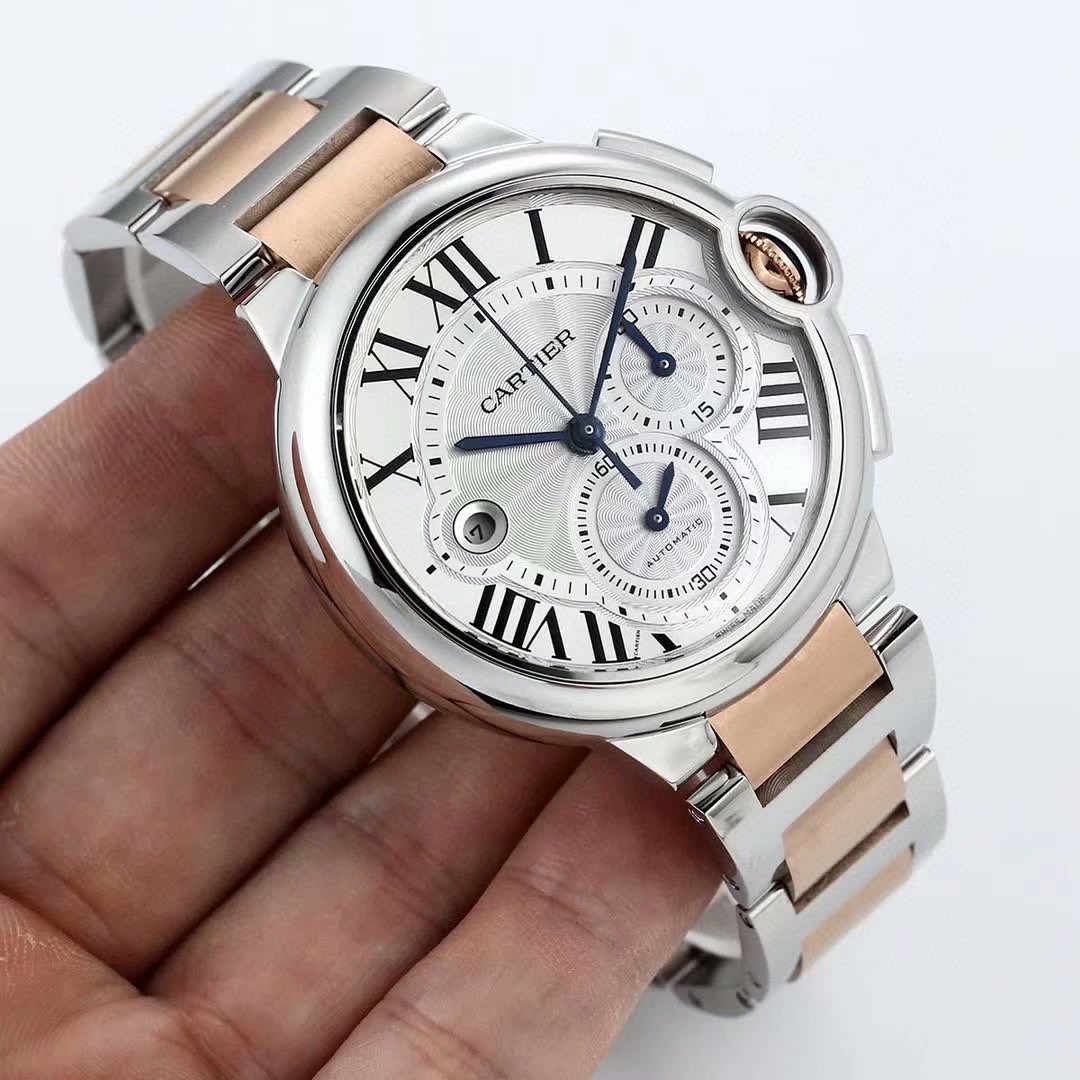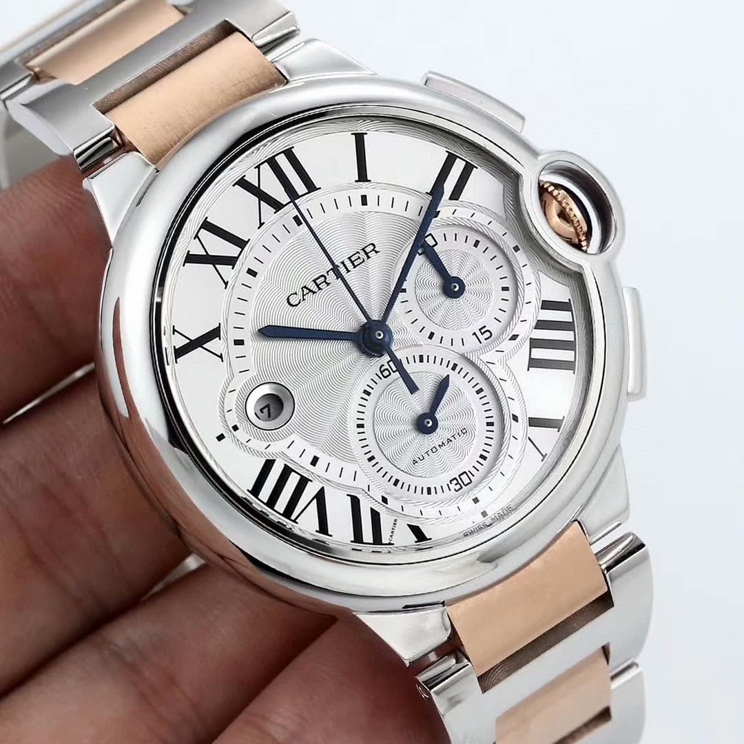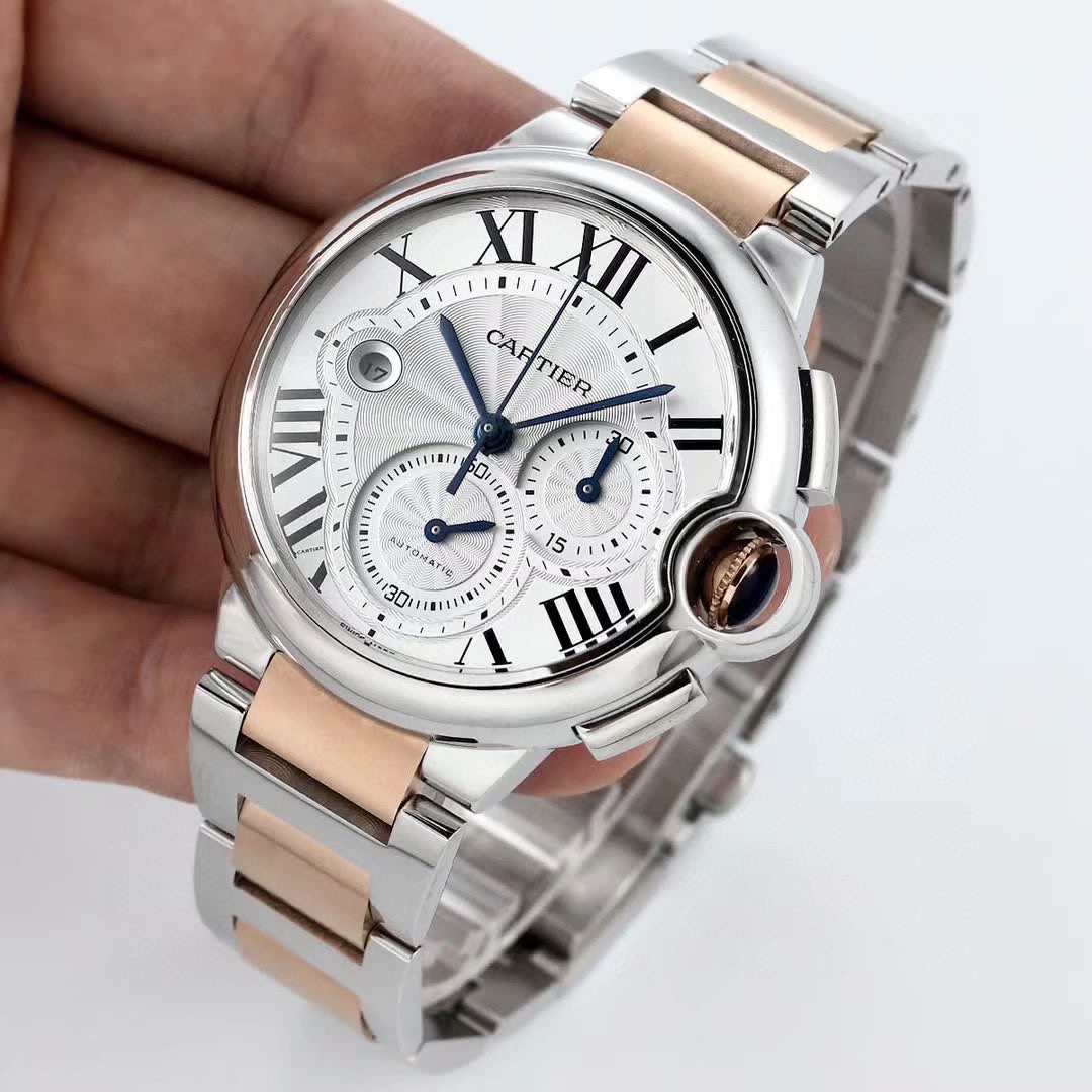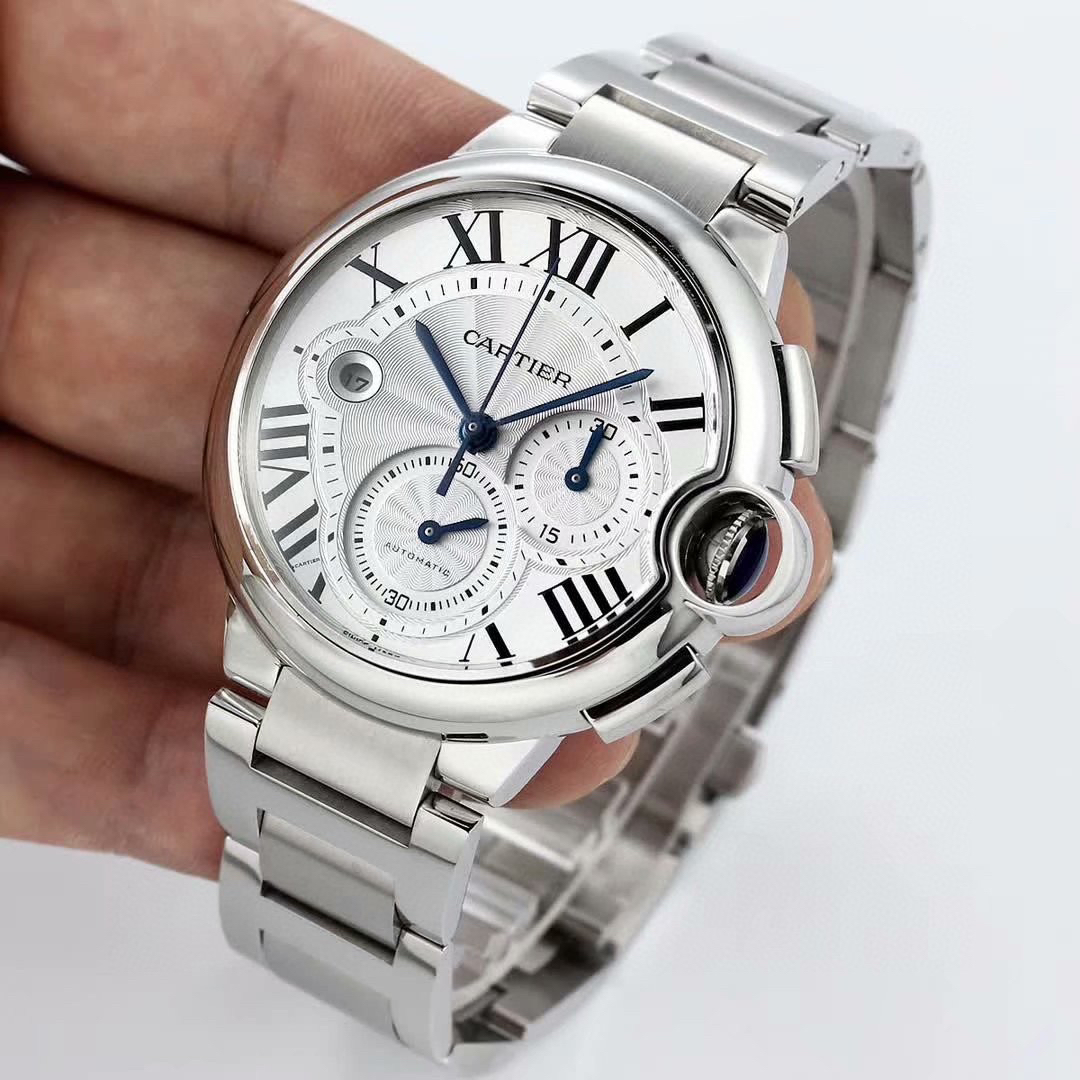 NOOB official精品 卡地亚 蓝气球系列 计时机械腕表 V5S升级版 主要升级为最新原版与一致的以下几点️:机芯采用7750六秒计时机芯(纯机芯定制,不改任何结构与功能)复刻原装Cal.8101.MC机芯️机芯宝石均为真宝石,搭配与最新原版一致的1904实心陀片️:双层立体字面,字面的纹路,颜色均与原装一致️:日历的字体,大小,颜色均与最新原版一致!使之整体效果更加与正品无限接近NOOB official boutique Cartier Blue Balloon series timing mechanical watch V5S upgraded version is mainly upgraded to the latest original version and consistent with the following points: the movement adopts a 7750 six second timing movement (pure movement customization, without changing any structure or function), replicating the original Cal.8101.MC movement. The gemstones of the movement are all real gemstones, matched with 1904 solid tourbillon that is consistent with the latest original version. The double-layer three-dimensional literal, literal pattern, color are consistent with the original version. The font, size, and color of the calendar are consistent with the latest original version! Make the overall effect closer to the genuine product infinitely