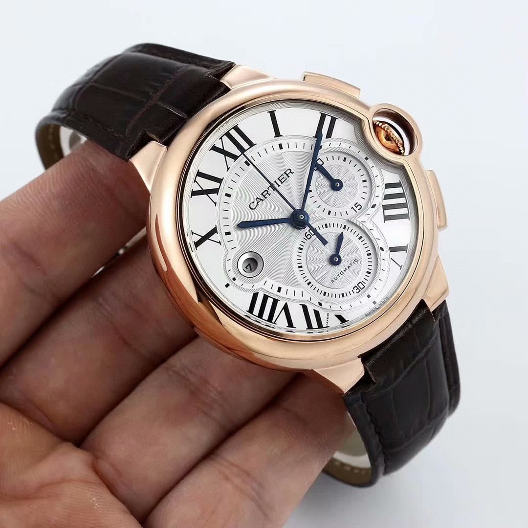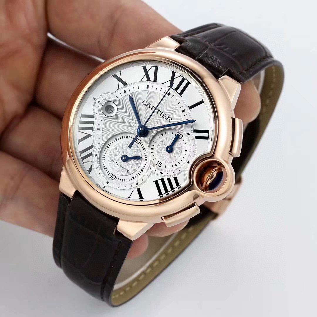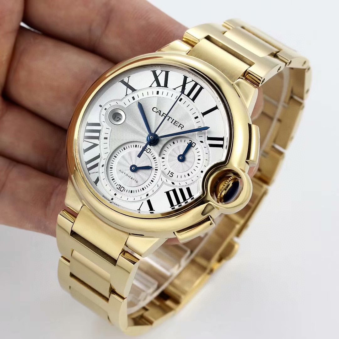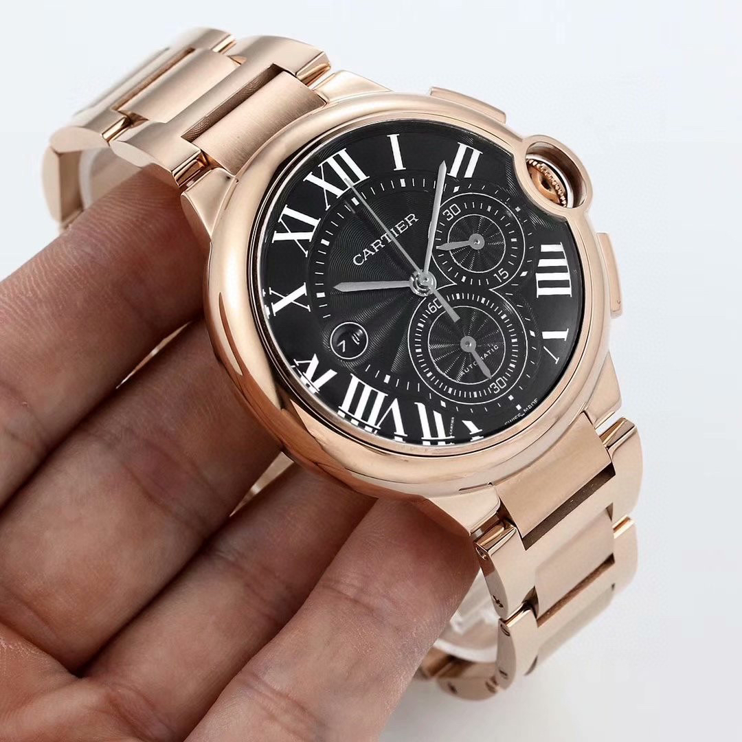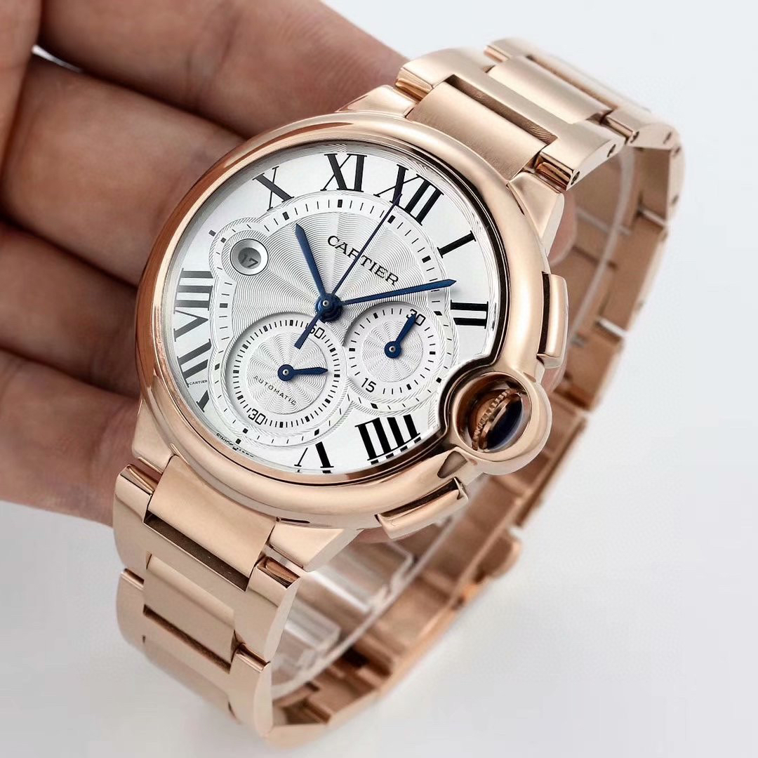 NOOB official精品 卡地亚 蓝气球系列 计时机械腕表 V5S升级版 主要升级为最新原版与一致的以下几点️:机芯采用7750六秒计时机芯(纯机芯定制,不改任何结构与功能)复刻原装Cal.8101.MC机芯️机芯宝石均为真宝石,搭配与最新原版一致的1904实心陀片️:双层立体字面,字面的纹路,颜色均与原装一致️:日历的字体,大小,颜色均与最新原版一致!使之整体效果更加与正品无限接近NOOB official boutique Cartier Blue Balloon series timing mechanical watch V5S upgraded version is mainly upgraded to the latest original version and consistent with the following points: the movement adopts a 7750 six second timing movement (pure movement customization, without changing any structure or function), replicating the original Cal.8101.MC movement. The gemstones of the movement are all real gemstones, matched with 1904 solid tourbillon that is consistent with the latest original version. The double-layer three-dimensional literal, literal pattern, color are consistent with the original version. The font, size, and color of the calendar are consistent with the latest original version! Make the overall effect closer to the genuine product infinitely