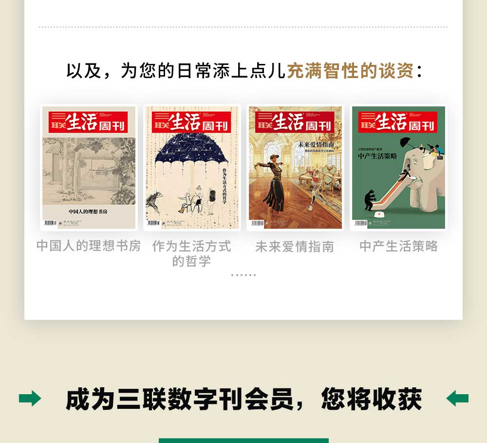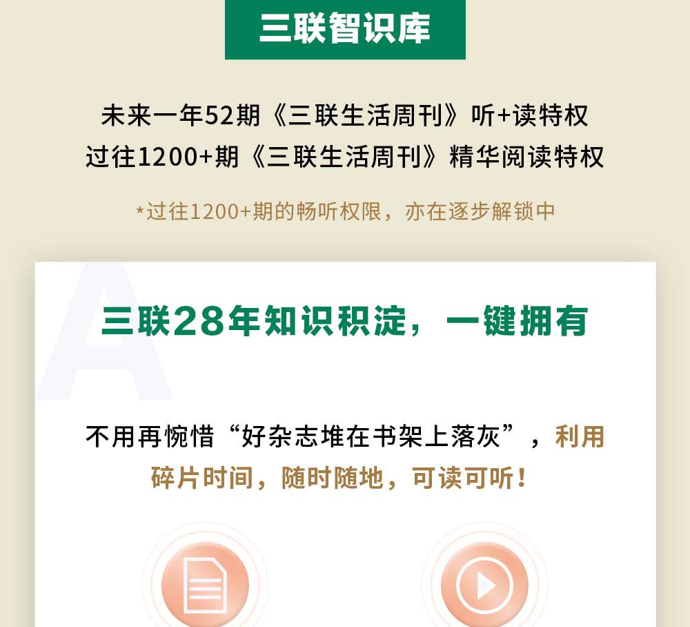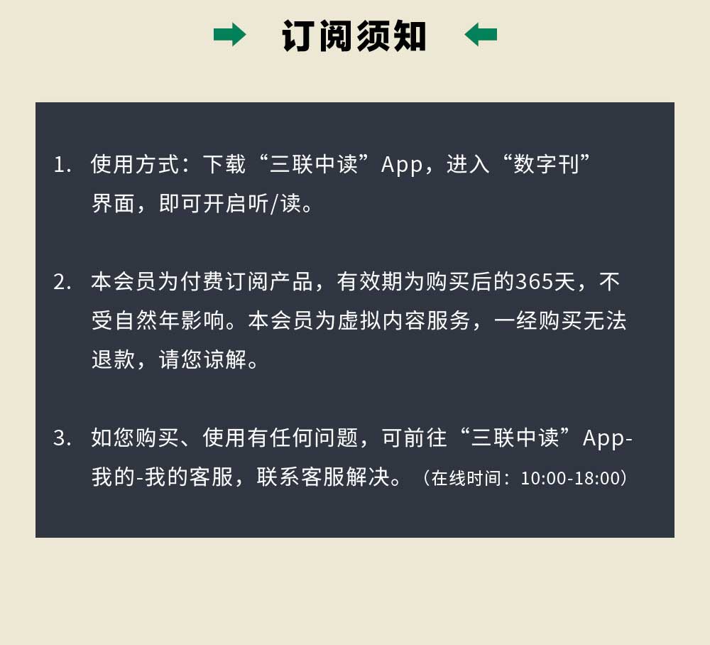 三联数字刊为虚拟知识服务类商品,并非实物商品。成功支付后请前往“三联中读”App用购买时填写的手机号登录使用。