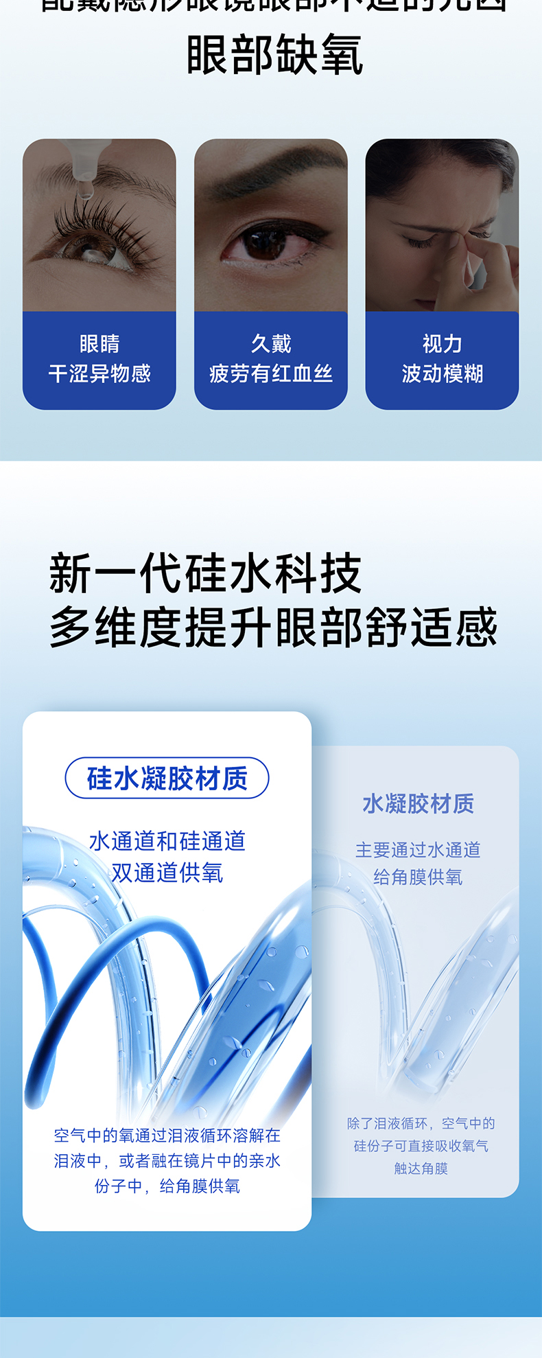 鱼跃隐形眼镜日抛硅水凝胶高度数透明近视镜片水润一次性
