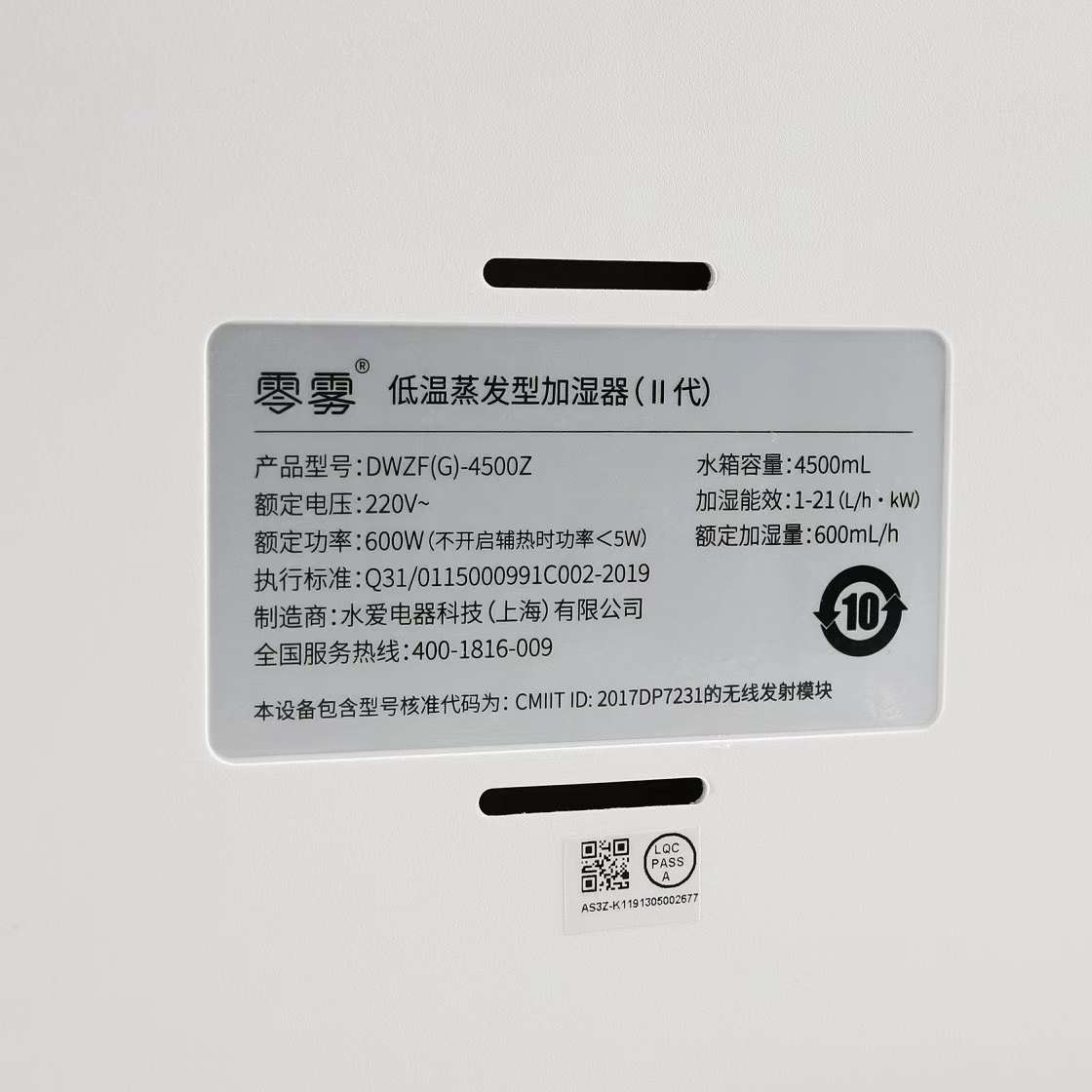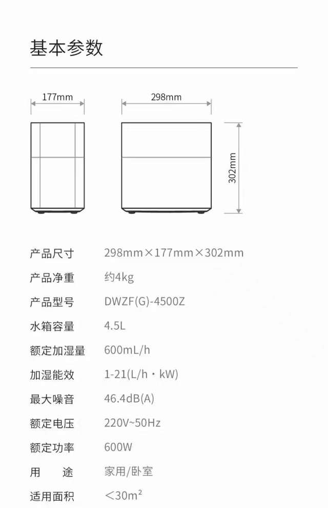 【产品名称】:米家零雾低温蒸发型家用加湿器