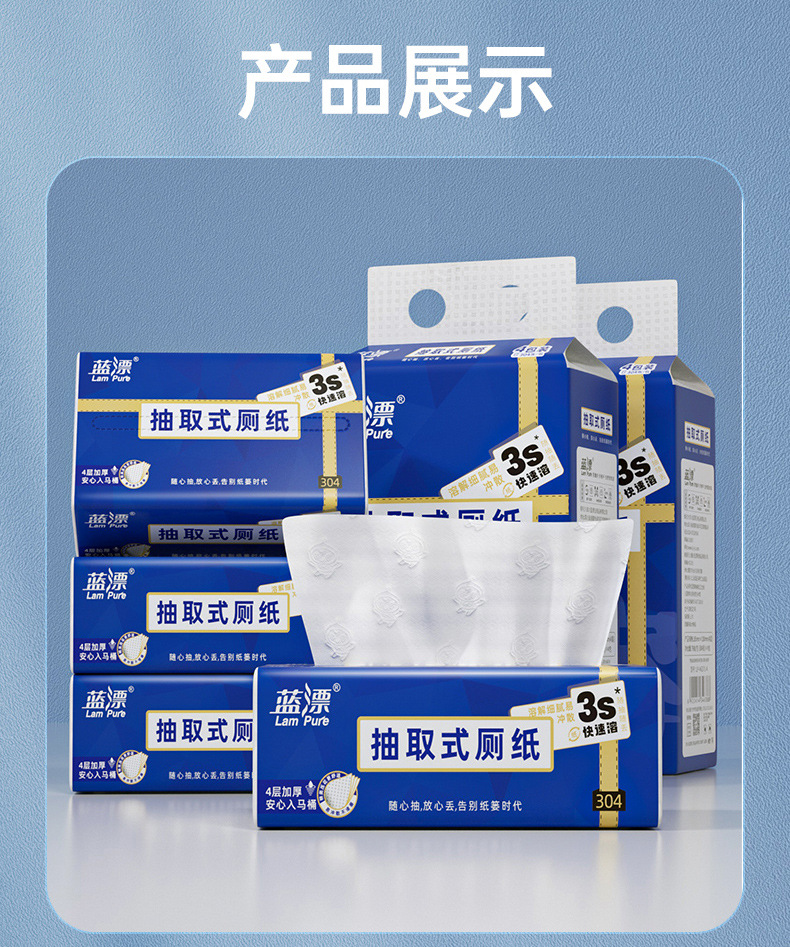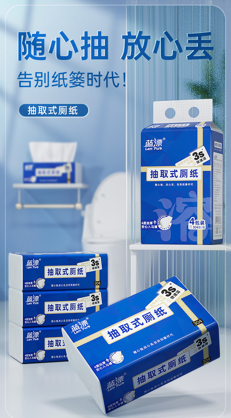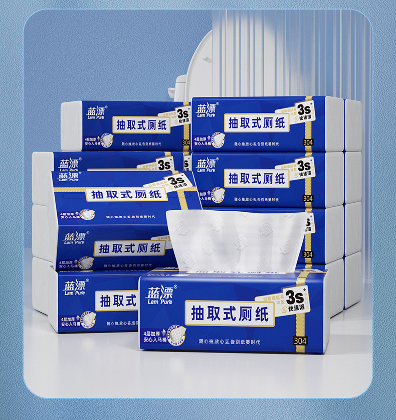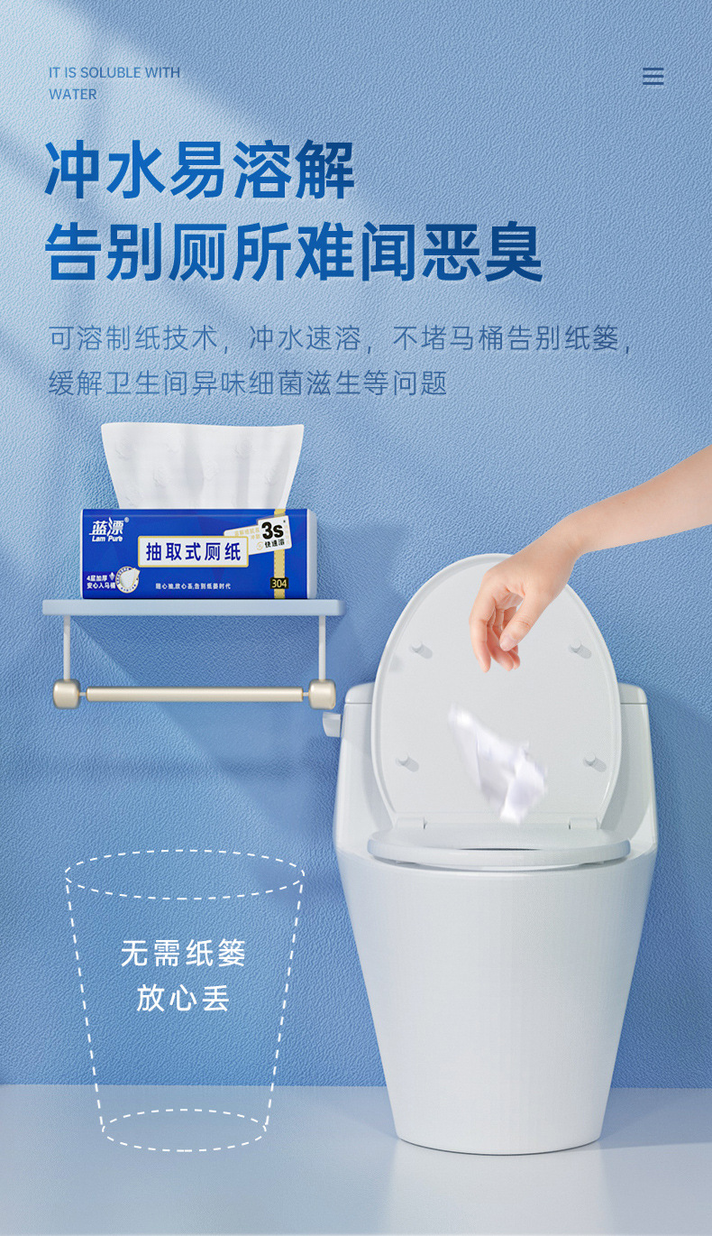 「4包装!易冲散厕纸」蓝漂新式可溶厕纸 居家日用卫生间用抽取式纸巾4包清洁工具