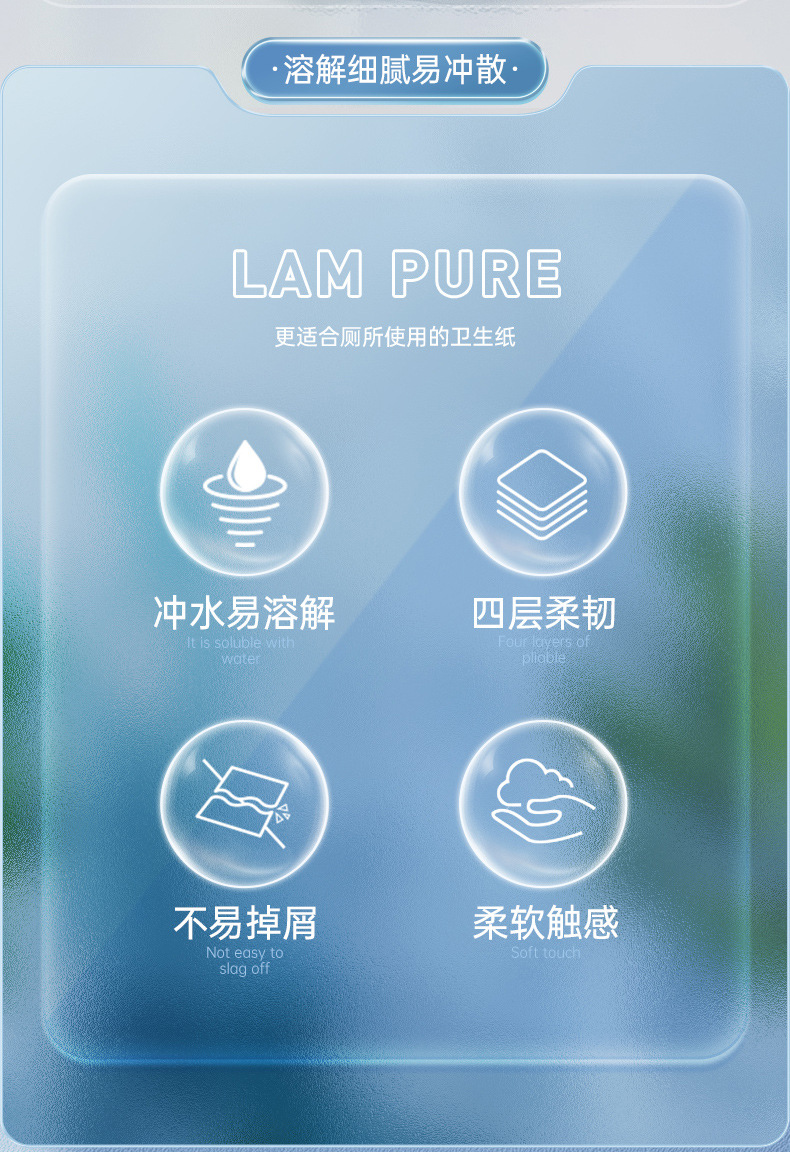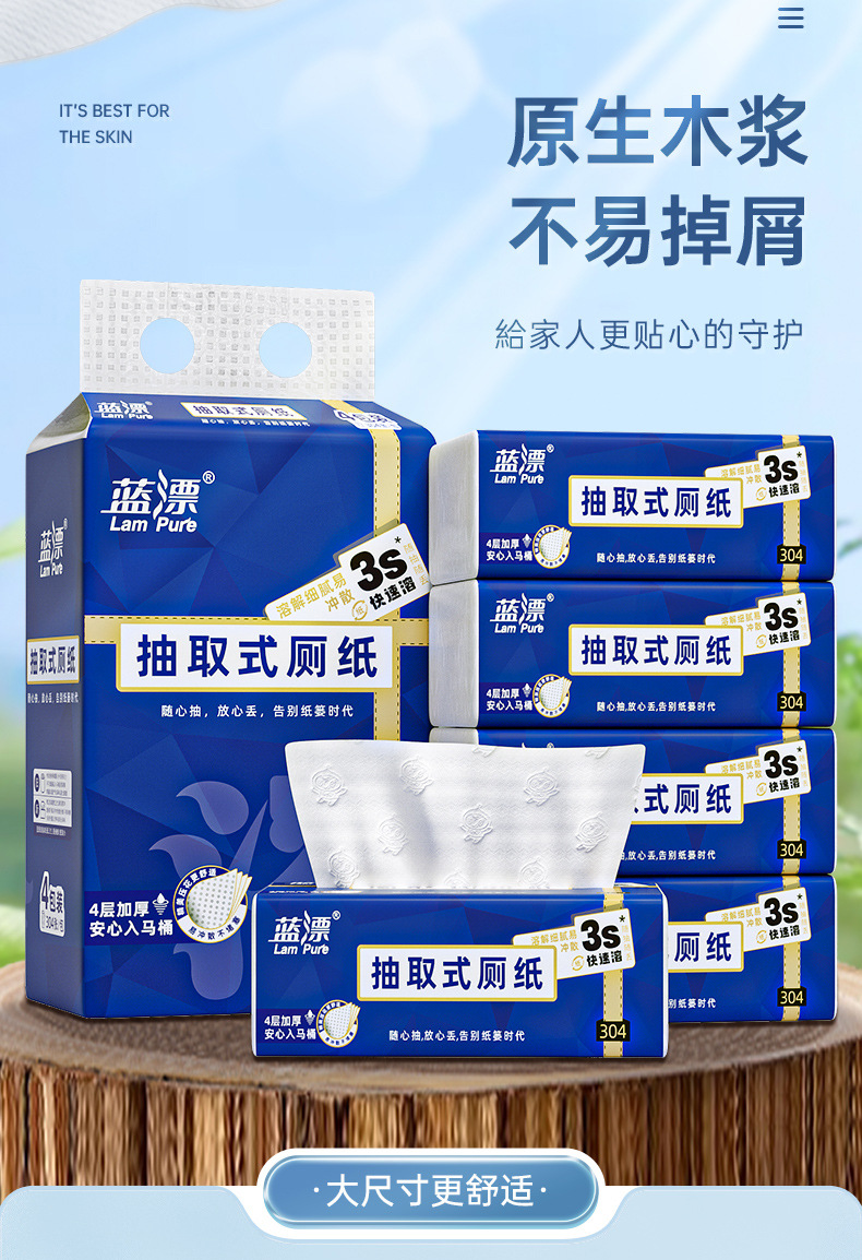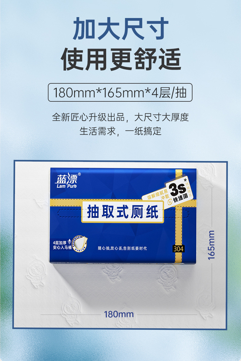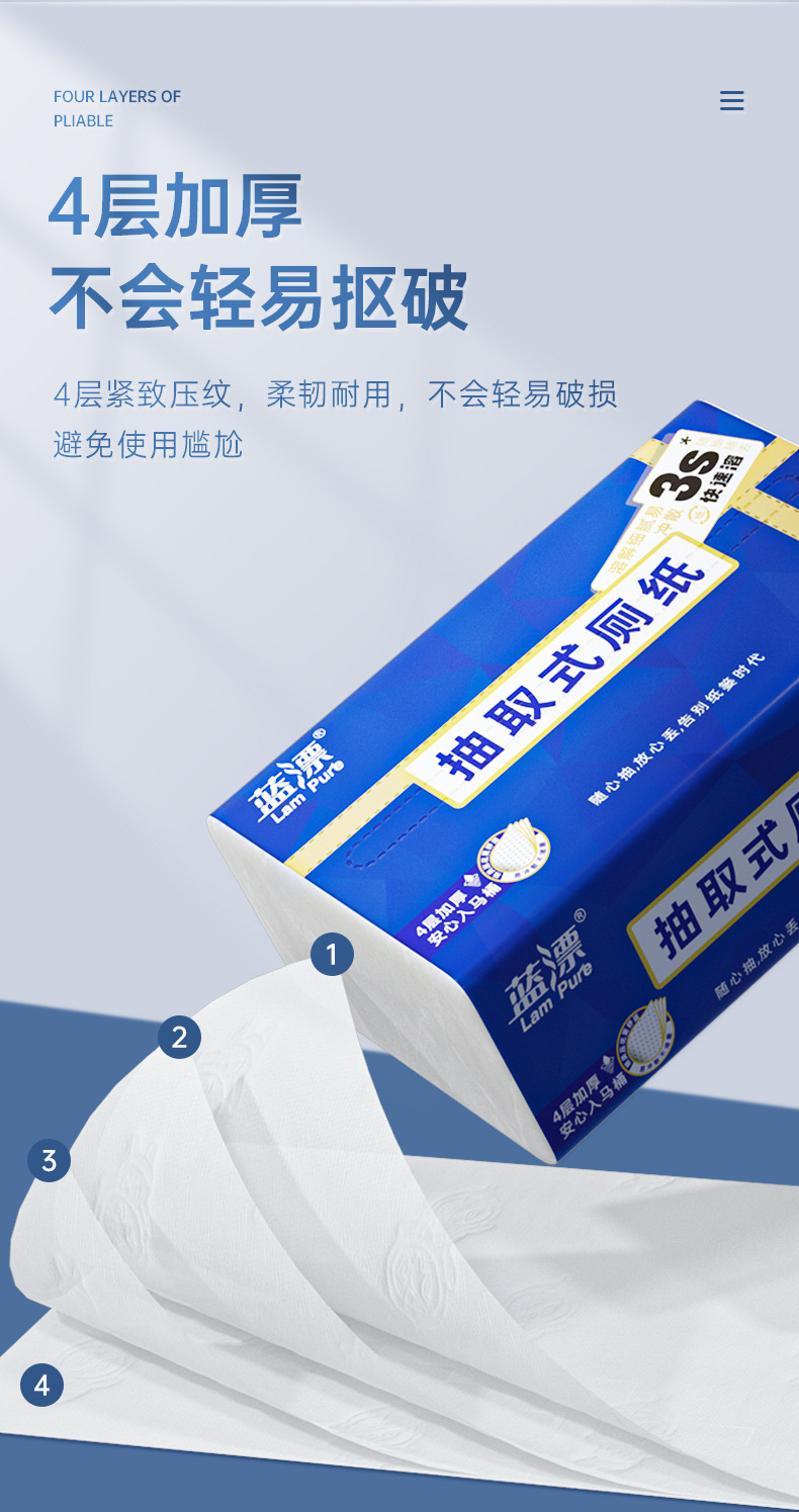 「4包装!易冲散厕纸」蓝漂新式可溶厕纸 居家日用卫生间用抽取式纸巾4包清洁工具