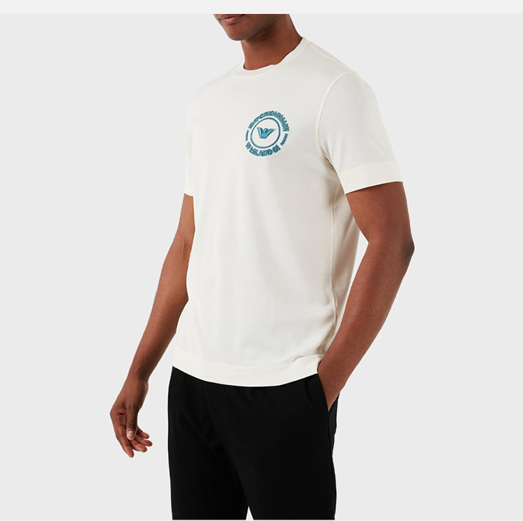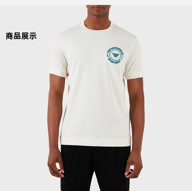 EMPORIO ARMANI 阿玛尼 男士徽标刺绣棉质圆领短袖T恤 米色 3D1TG8 1JOCZ 01A5