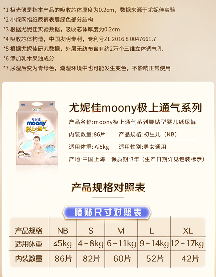 尤妮佳moony极上通气系列腰贴型 NB86片