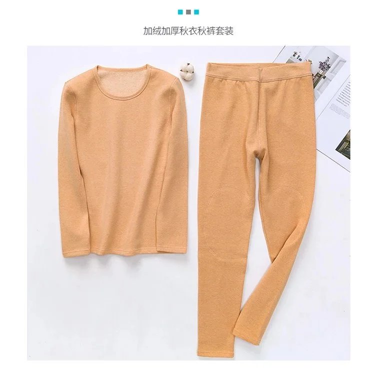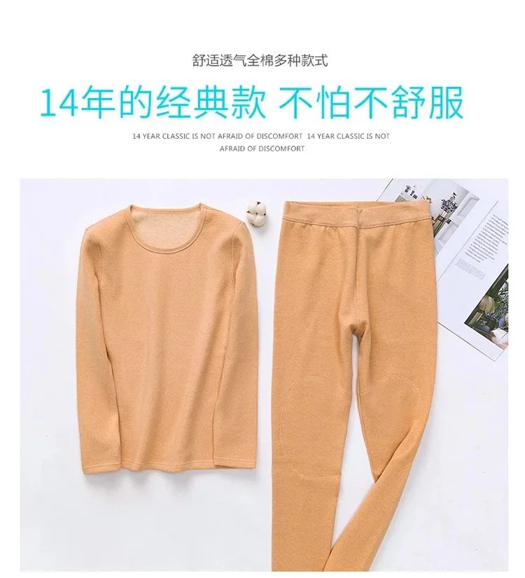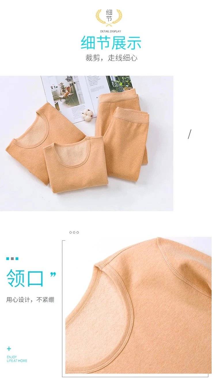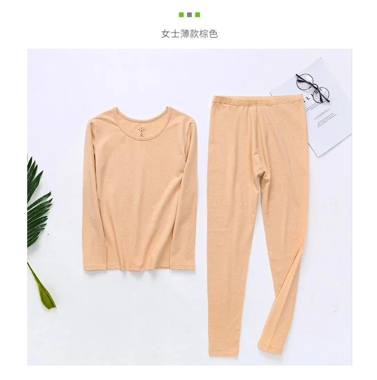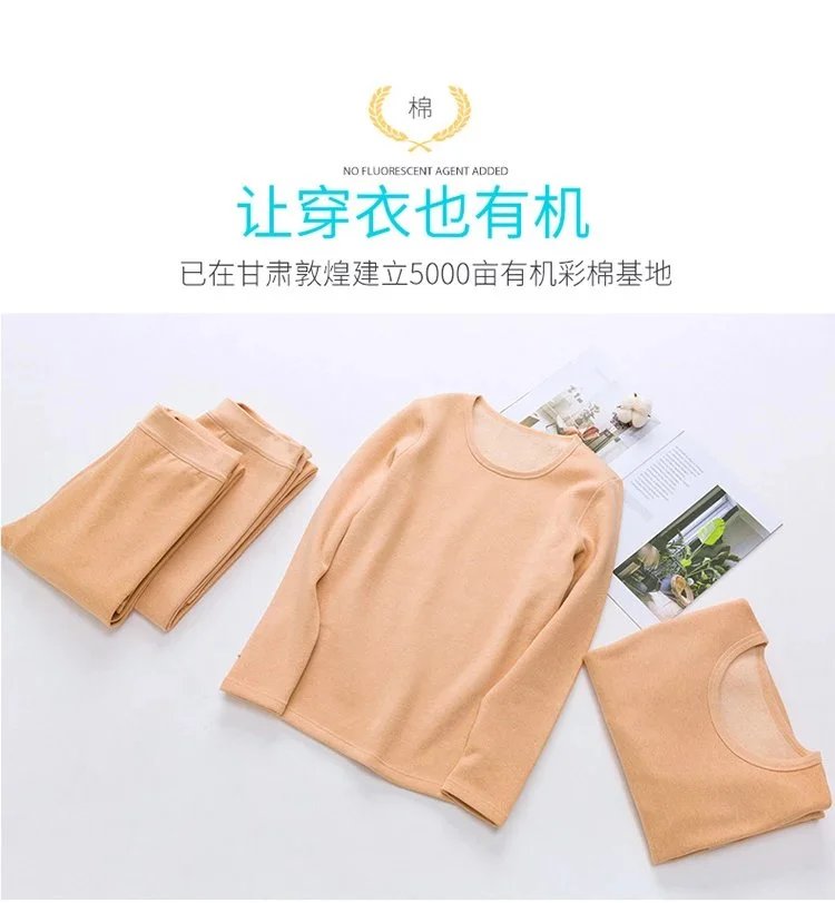 素道有机彩棉女士保暖内衣 秋衣秋裤 套装 修身 圆领 有机彩棉 亲肤 舒适 抗寒 不染色 不漂白