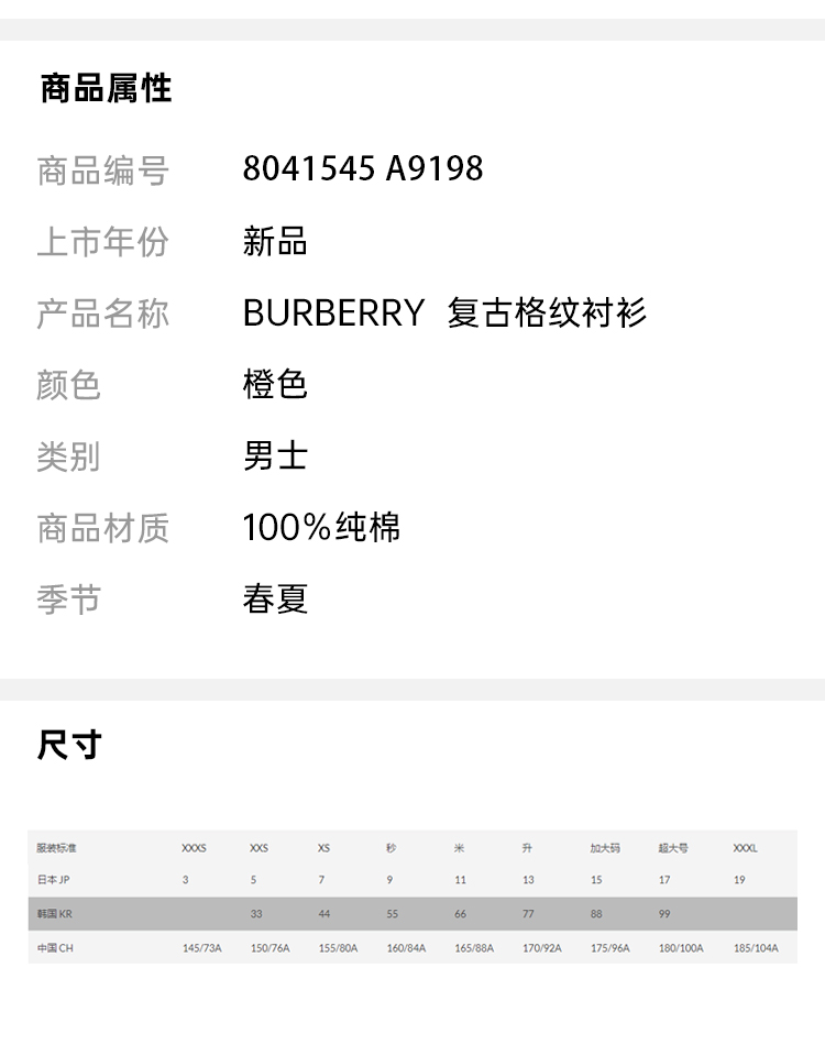 BURBERRY 巴宝莉 男士格纹印花棉质短袖衬衫 混色 8041545 A9198