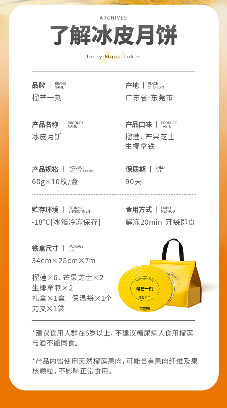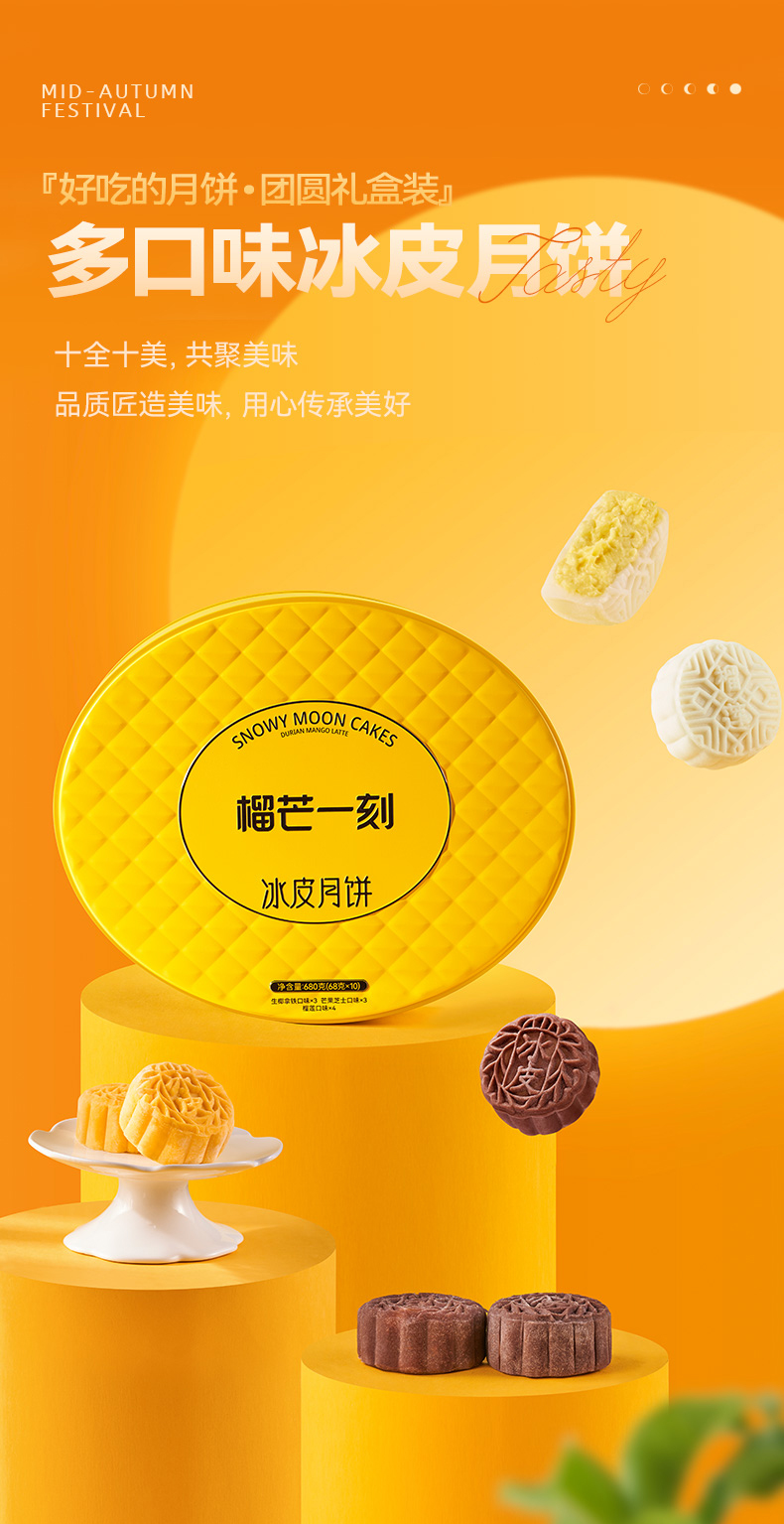 榴莲一刻多口味冰皮月饼十全十美 【68g*10枚装】