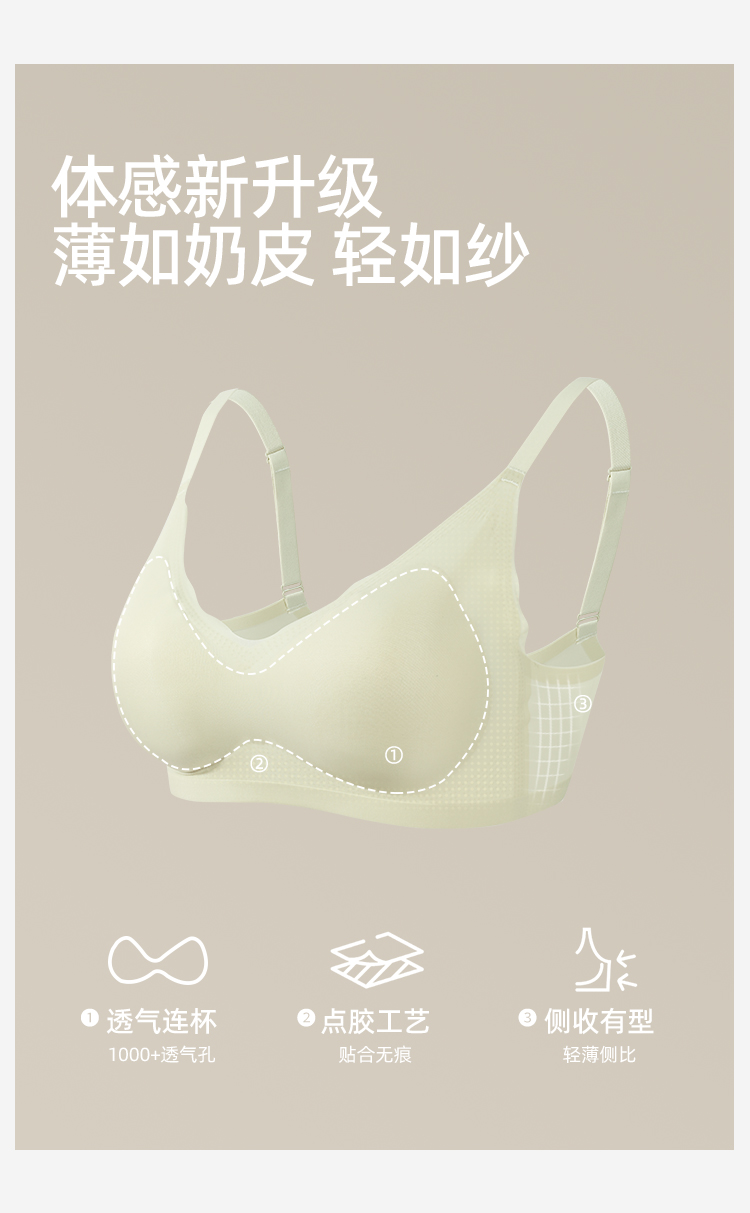 【商场同款】熳洁儿 凉感纱无尺码自由bra小波浪聚拢无痕文胸23201552