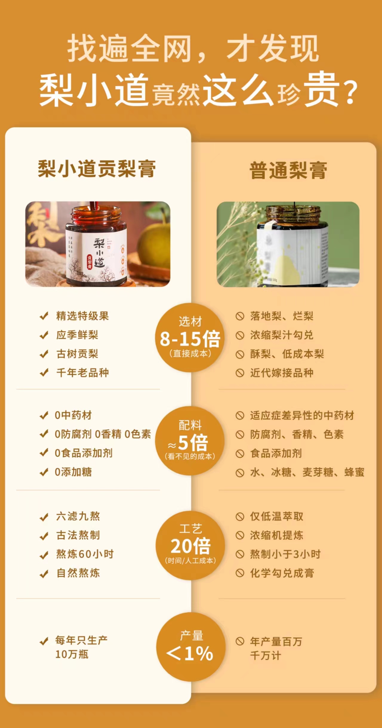 🌈1瓶梨小道≈5000g贡梨≈20瓶普通梨膏