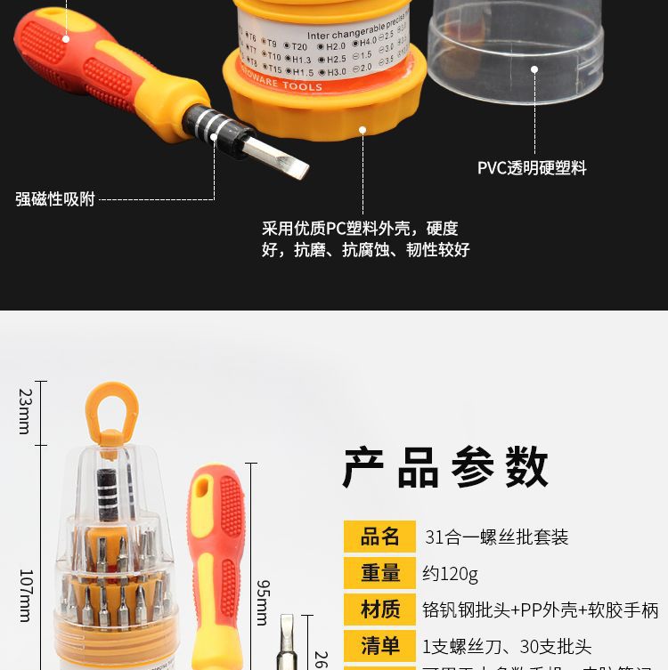 「9.9元包邮!31合一」螺丝刀组合套装 宝塔型多功能组合居家日用手机维修工具精密起子