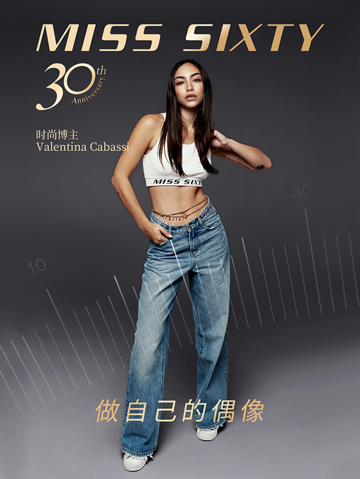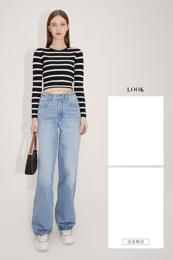 新Valentina Cabassi同款Miss Sixty21秋新款牛仔裤女高腰阔腿6N3JJ7180000