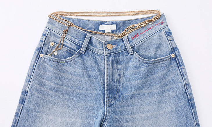 高腰剪裁配以吸睛logo金属腰链,彰显酷美潮流风格