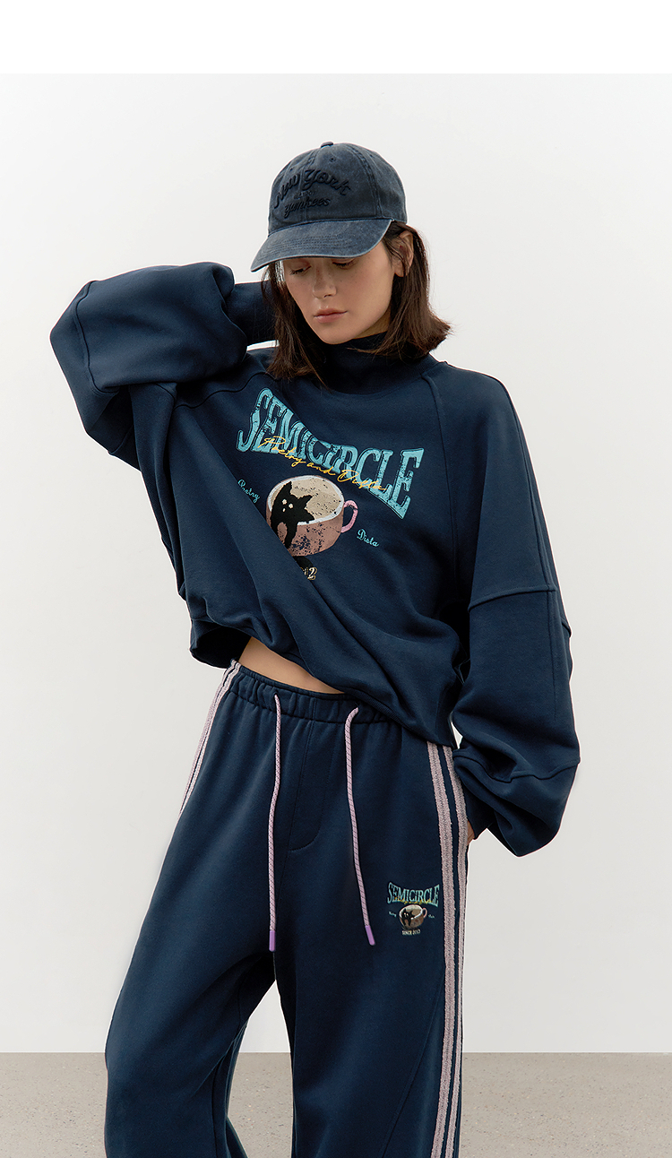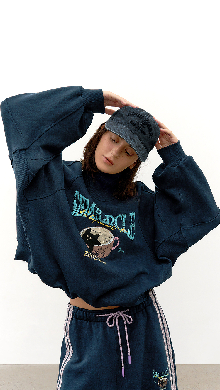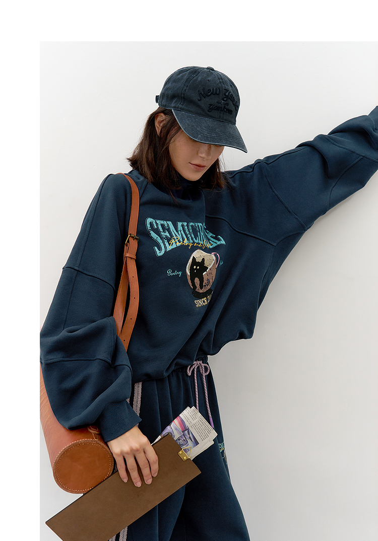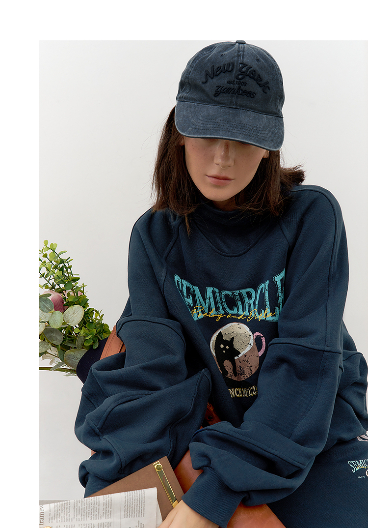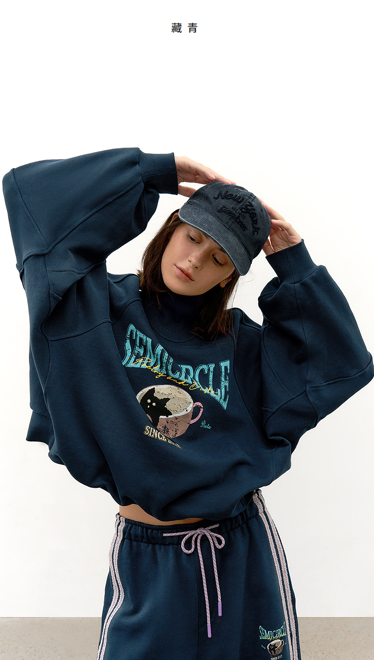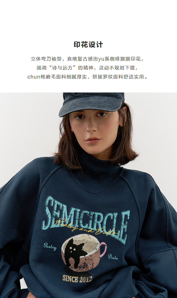 半圆/D56181086/磨毛宽松休闲弯刀袖印花卫衣