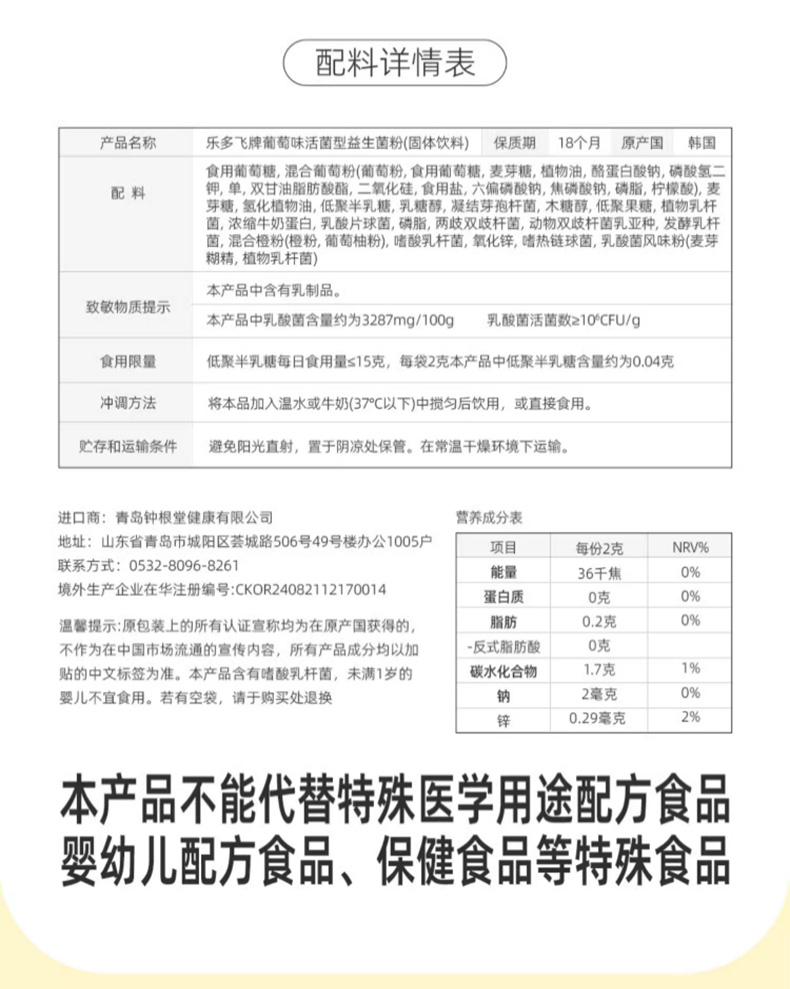 【预售-4月13日配送】韩国进口乐多飞调理肠道益生菌粉(2g*50条/罐)生产日期:2月