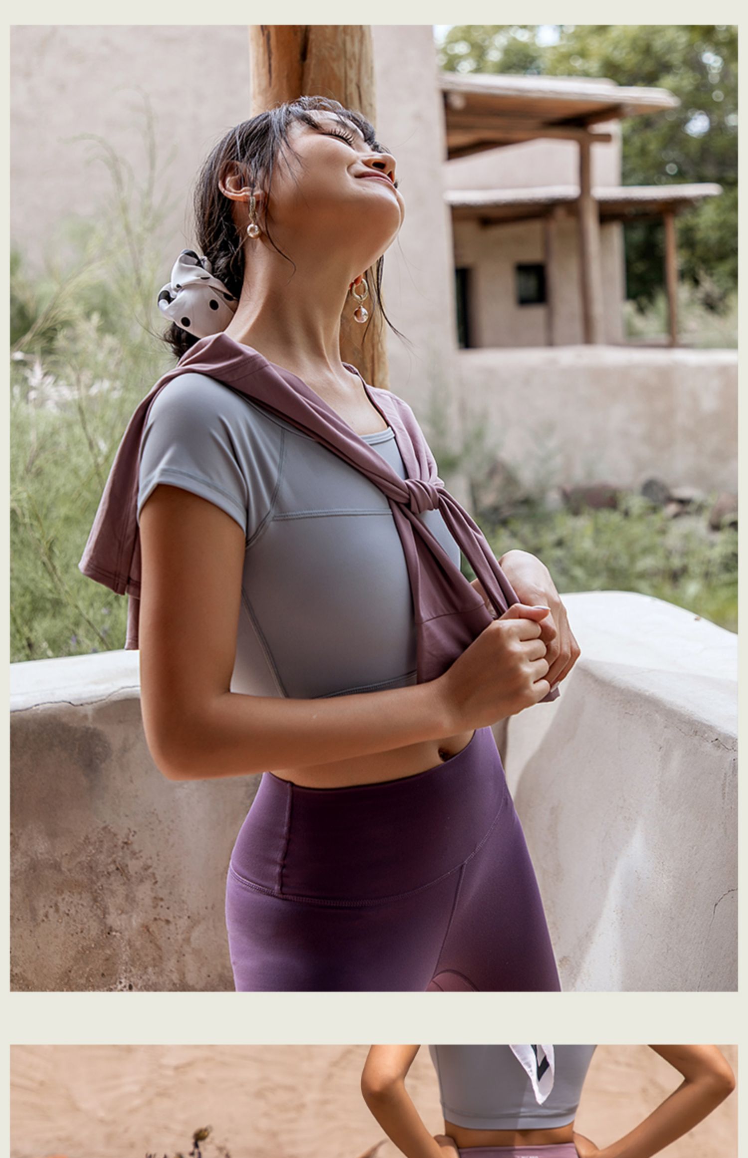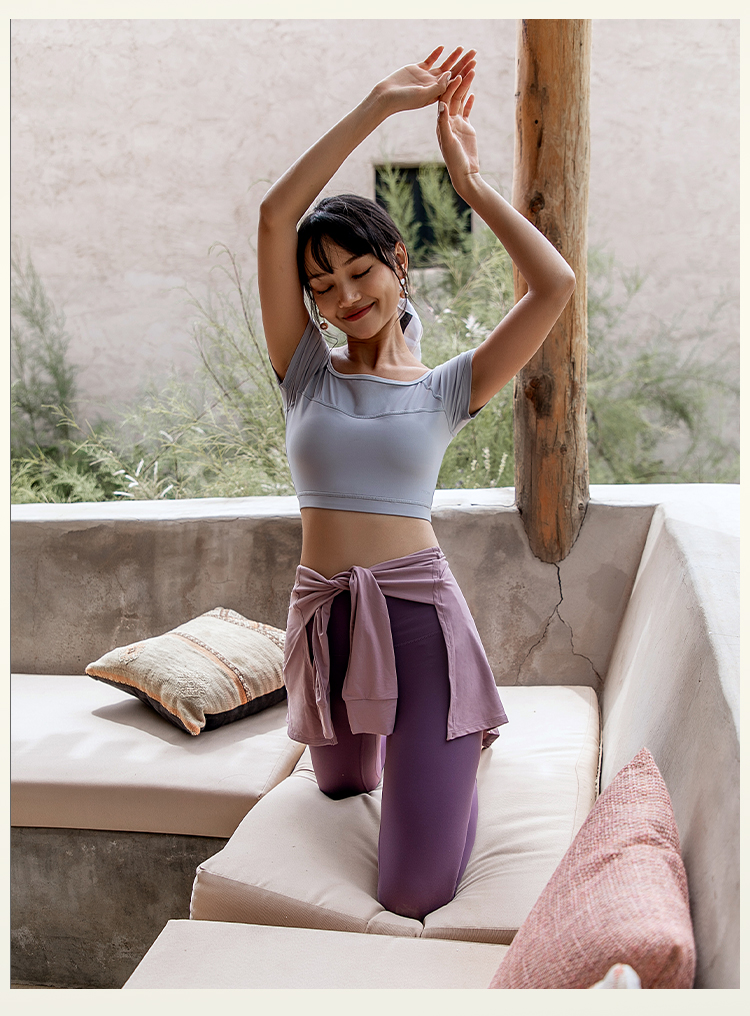 【高弹面料】不对称腰抽皱美臀运动九分裤