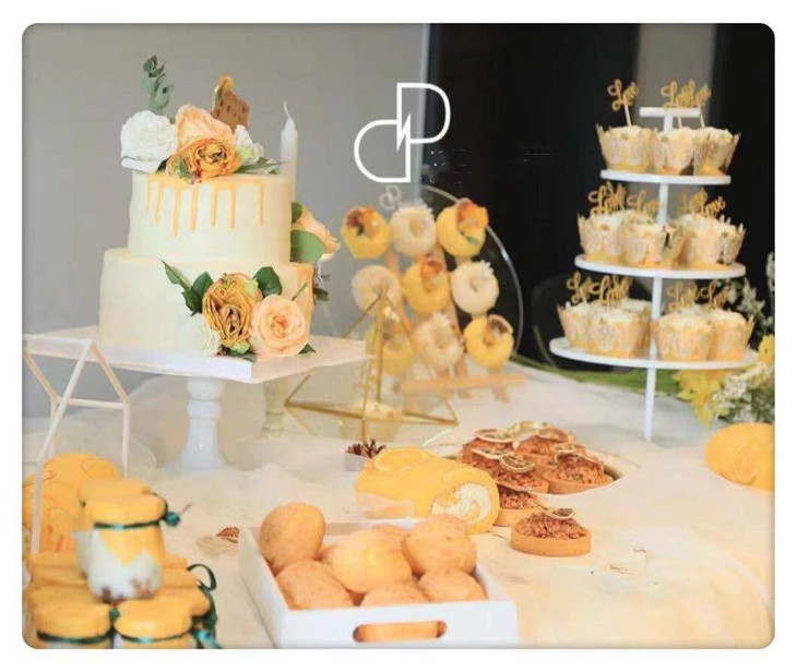 甜品台:黄昏下的粉玫瑰