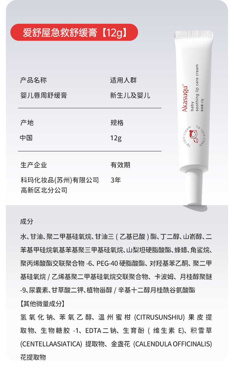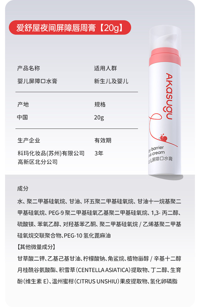 Akasugu爱舒屋婴儿宝宝唇周口水膏口欲期婴童舒缓用