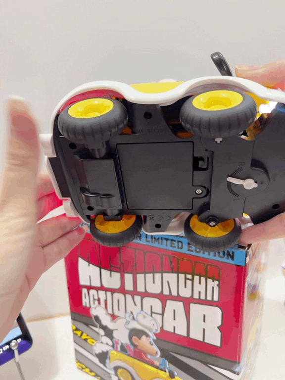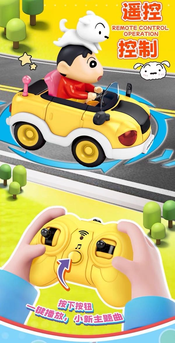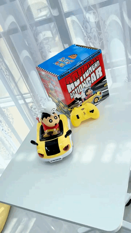 蜡笔小新粉丝的收藏级宝藏——经典黄黑配色的敞篷车造型吸睛度拉满,小新驾驶时的搞怪神态、小白趴在头顶的呆萌模样,完美还原动画名场面。 更有声光特效+主题音乐加持,按下遥控键,瞬间带你穿梭回春日部的欢乐街区!