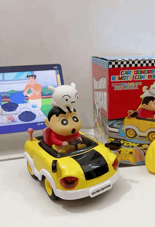 小新开着黄黑敞篷车、小白头顶“搭便车”的经典组合,一出场就戳中童年情怀; 更是玩乐界的“动感担当”,遥控操作丝滑带感, 声光特效+专属BGM一键拉满氛围感,孩子能在家上演“春日部速度与激情”, 大人能把它当收藏摆件唤醒青春记忆😍