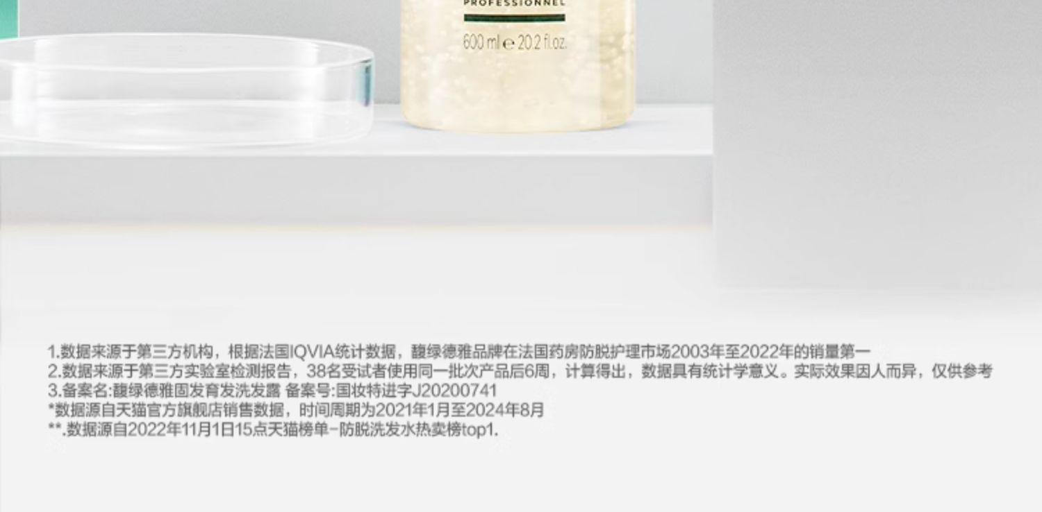 馥绿德雅固发育发洗发露600ml/117984 南法植萃香氛从头皮开始多效防脱