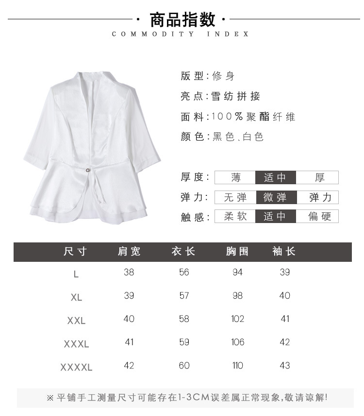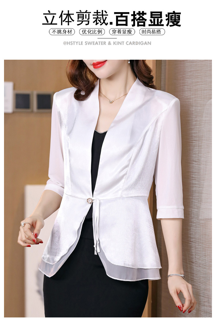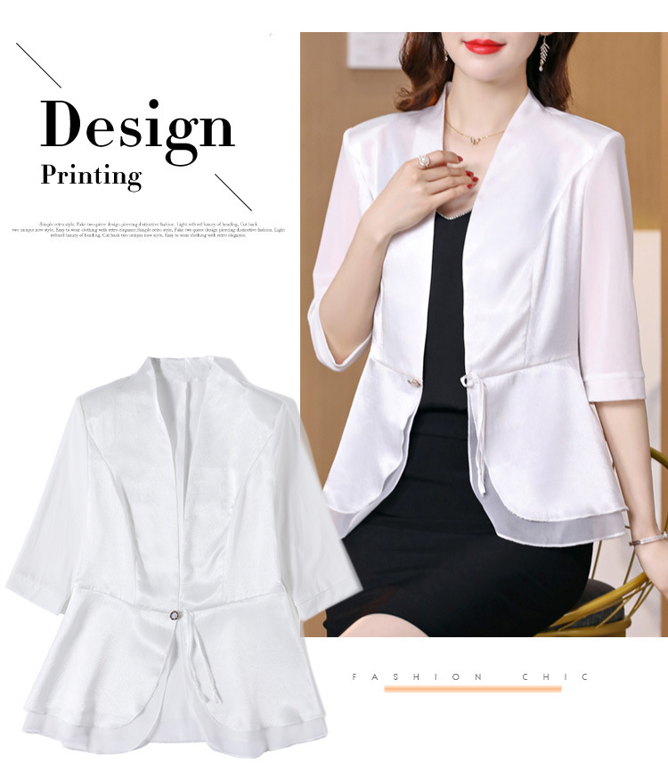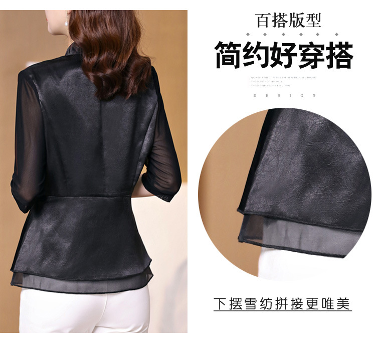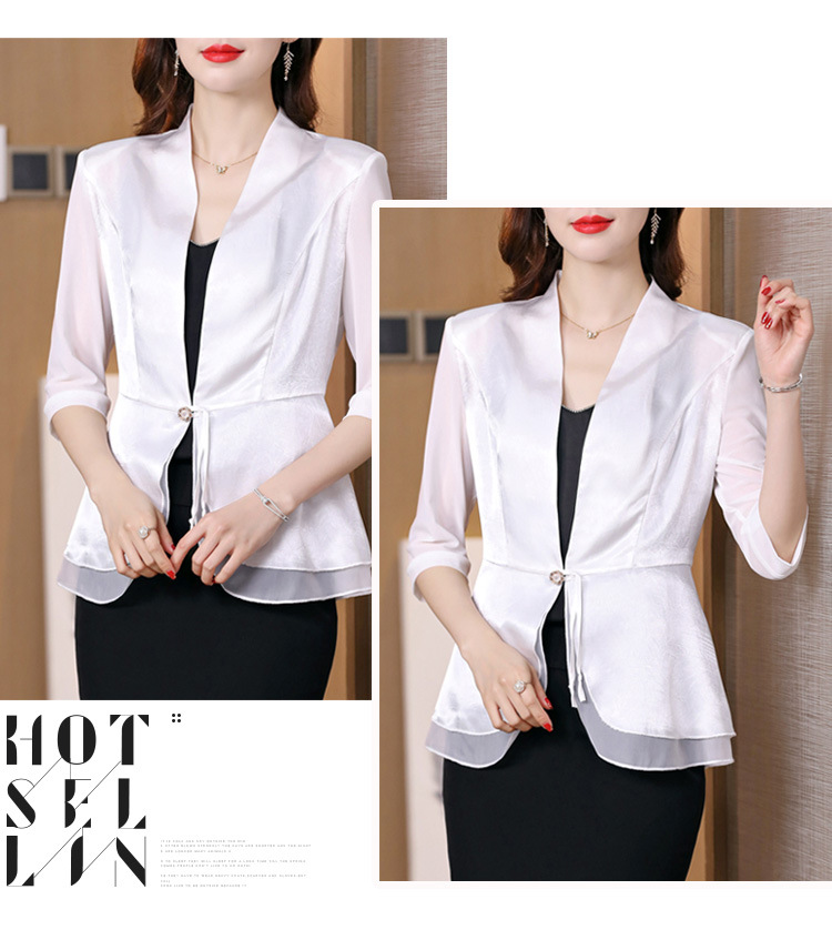 时尚纯色,修身百搭修行显瘦缎面拼接网纱中袖外套KQL-2269