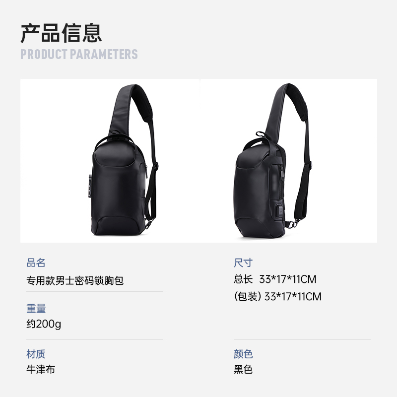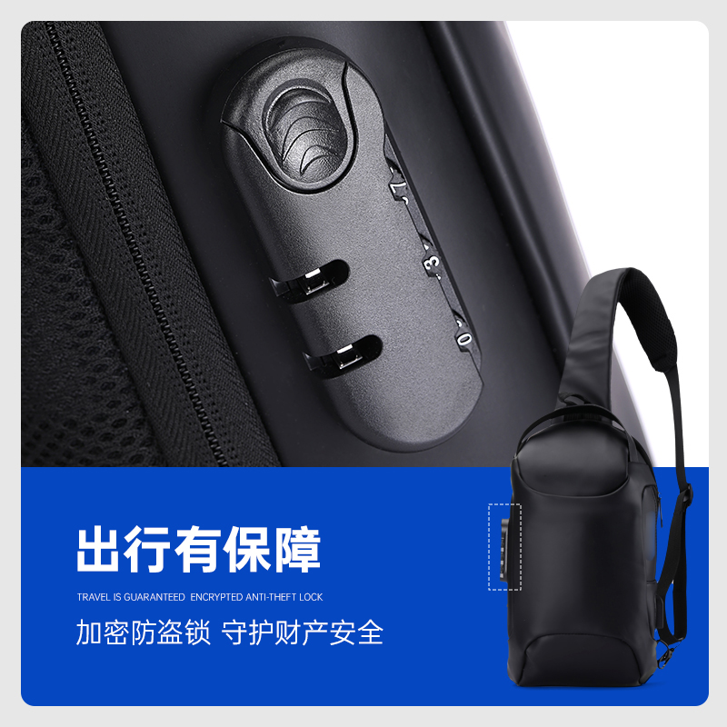 【专用款男士密码锁胸包】大容量休闲单肩包防泼水胸包斜挎包手提包