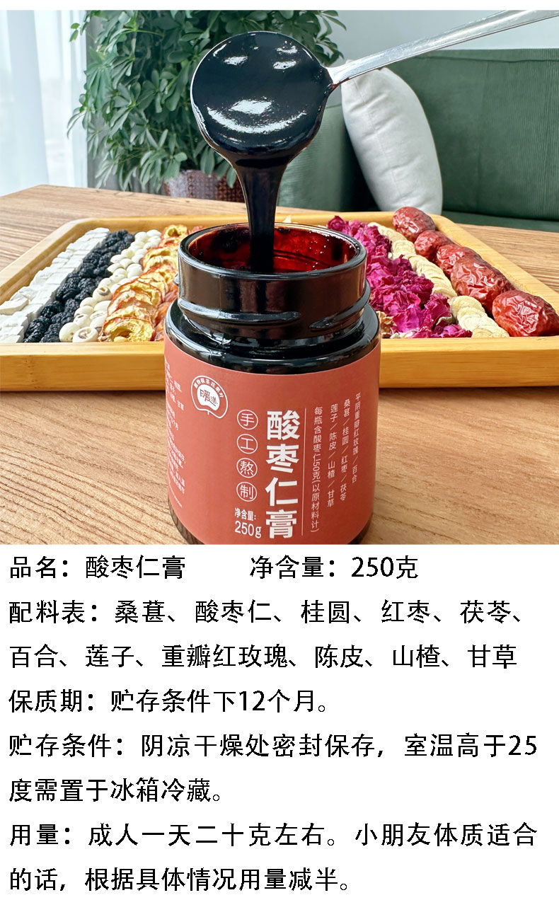 酸枣仁膏 原材料每瓶酸枣仁添加量≥50克 睡前膏安享 250克