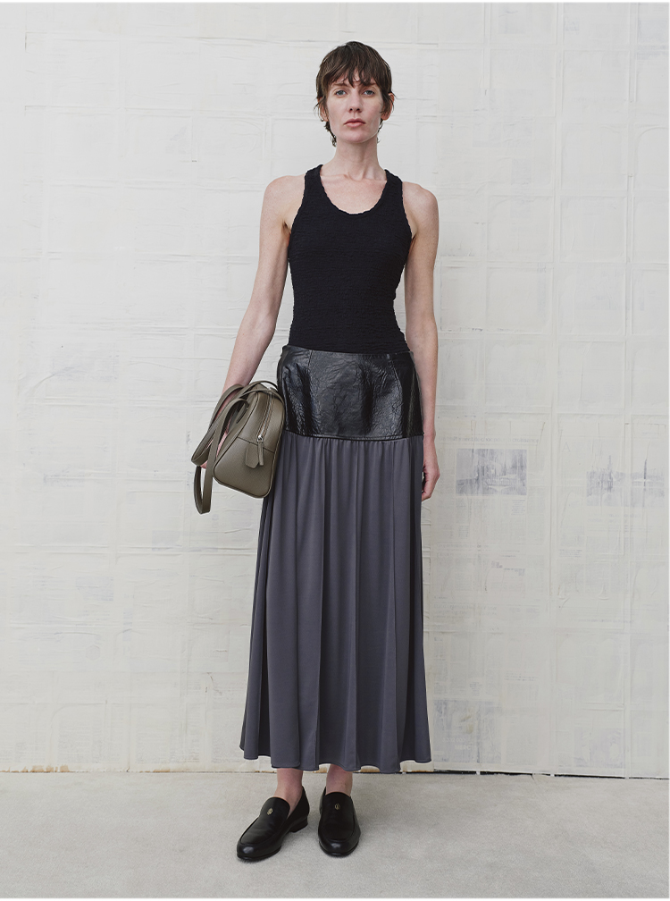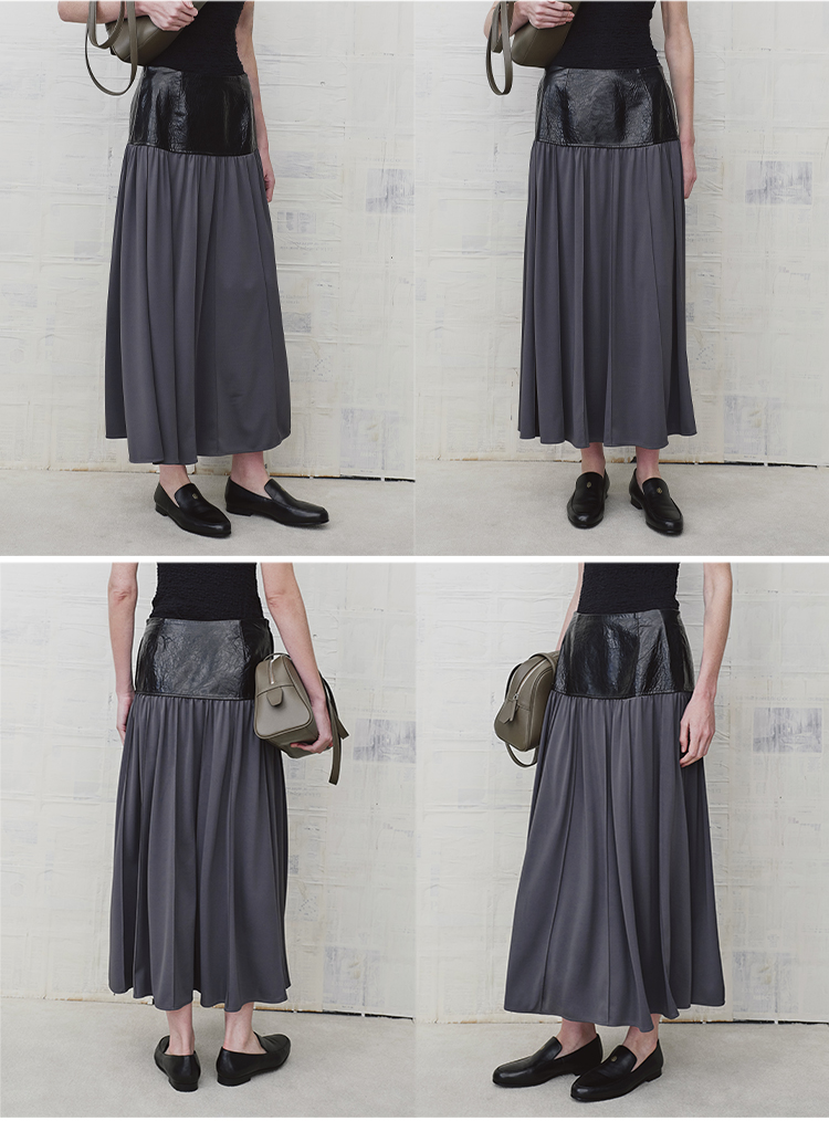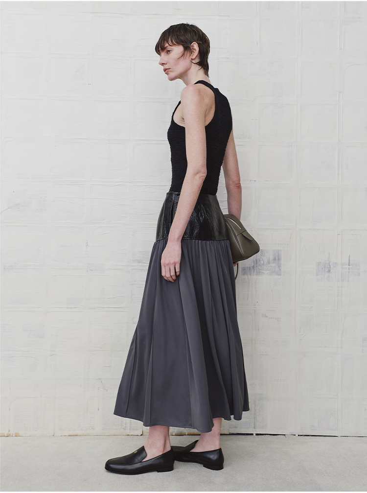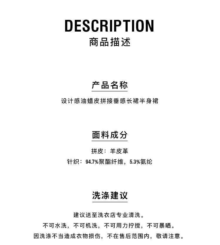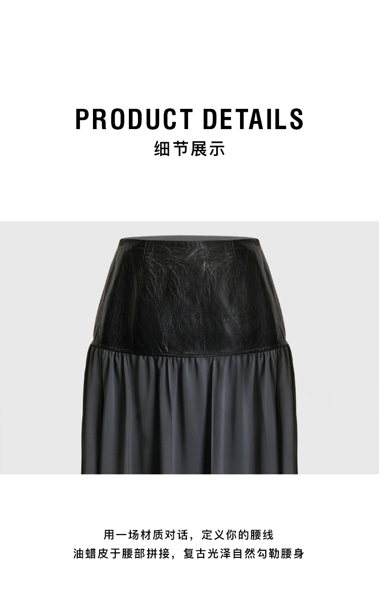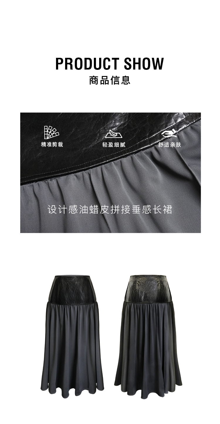 HIDEMI 设计感油蜡皮拼接套装垂感长裙半身裙