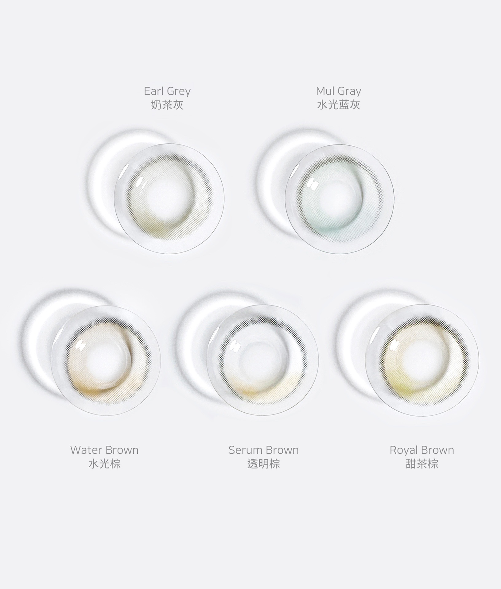 颜色:水光蓝灰、水光棕、甜茶棕、奶茶灰、透明棕 共5色入
