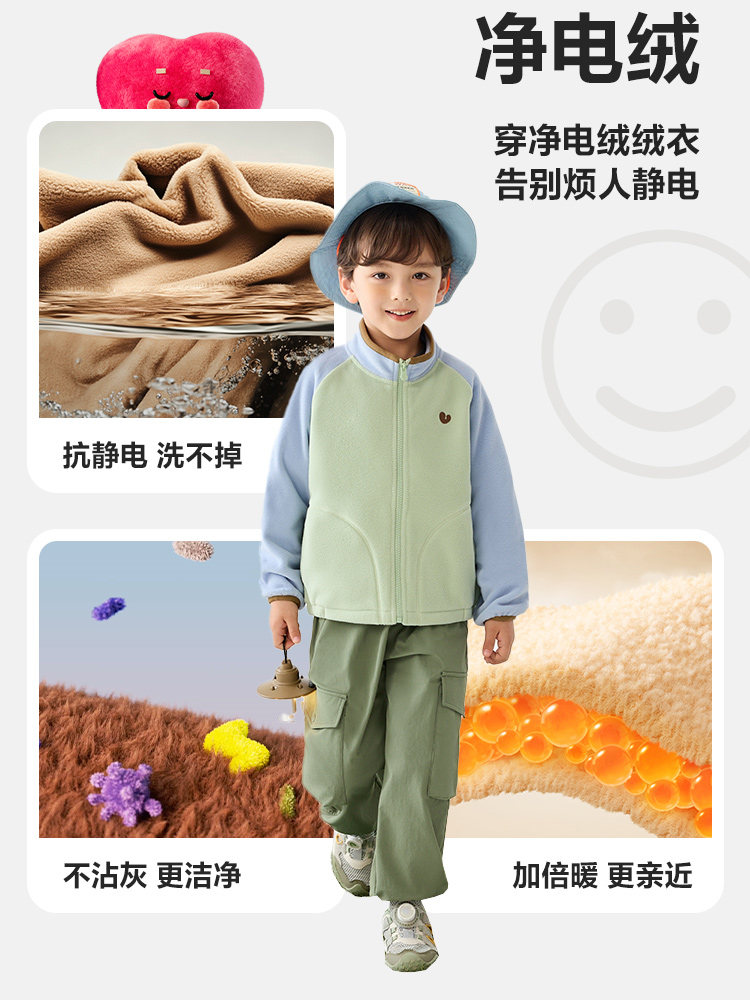 【净电绒】迷你巴拉儿童抗静电外套春季新款宝宝毛绒保暖上衣