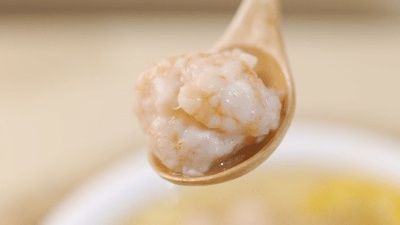 将虾肉细细研磨成虾浆,融入到蛋清之中,增加了虾滑的粘度。加入调味料,更简单的配方夺得了我不少好感,买得放心,吃得安心。