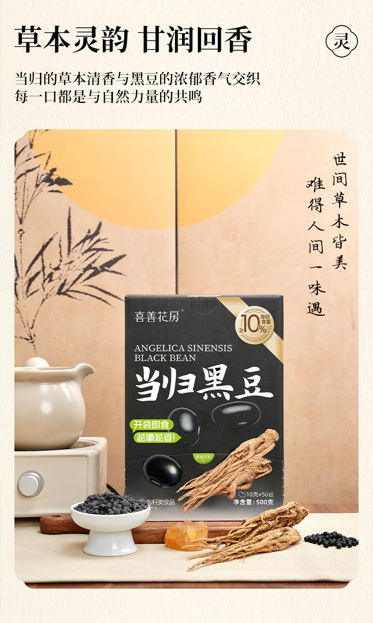 【超值50包装】喜善花房当归黑豆 自然本味 当归含量≥10% 独立包装 多样吃法 50包/盒
