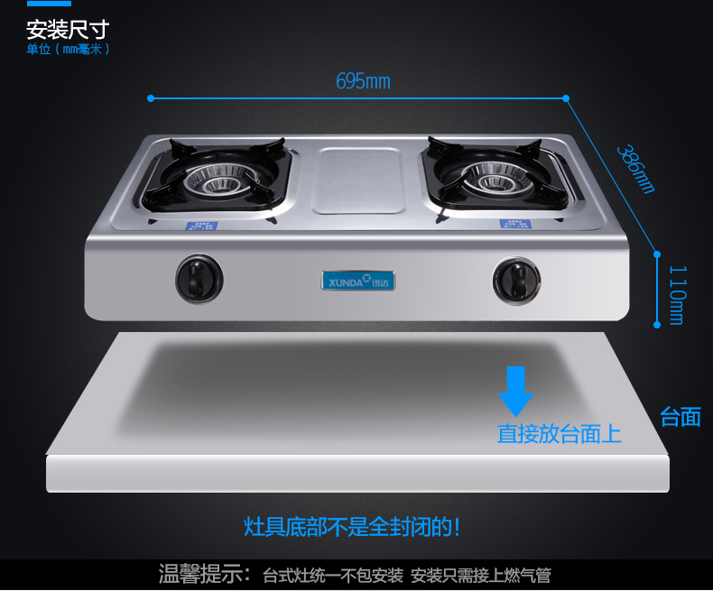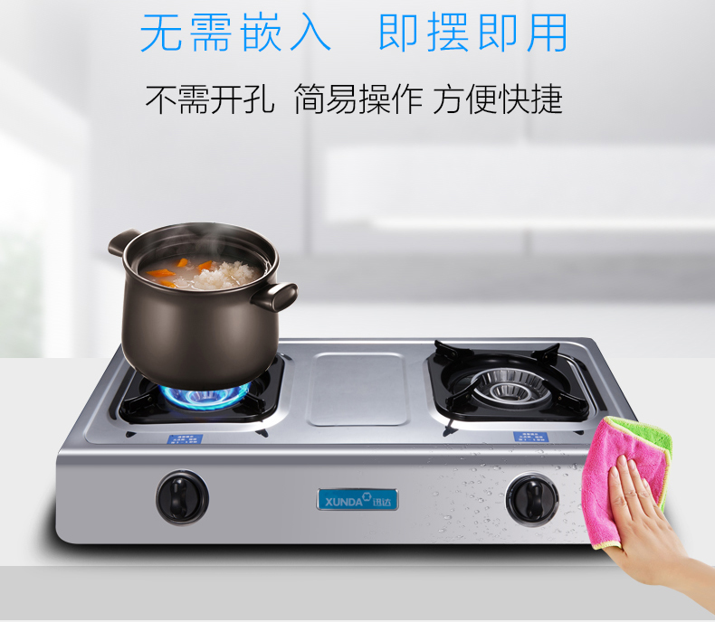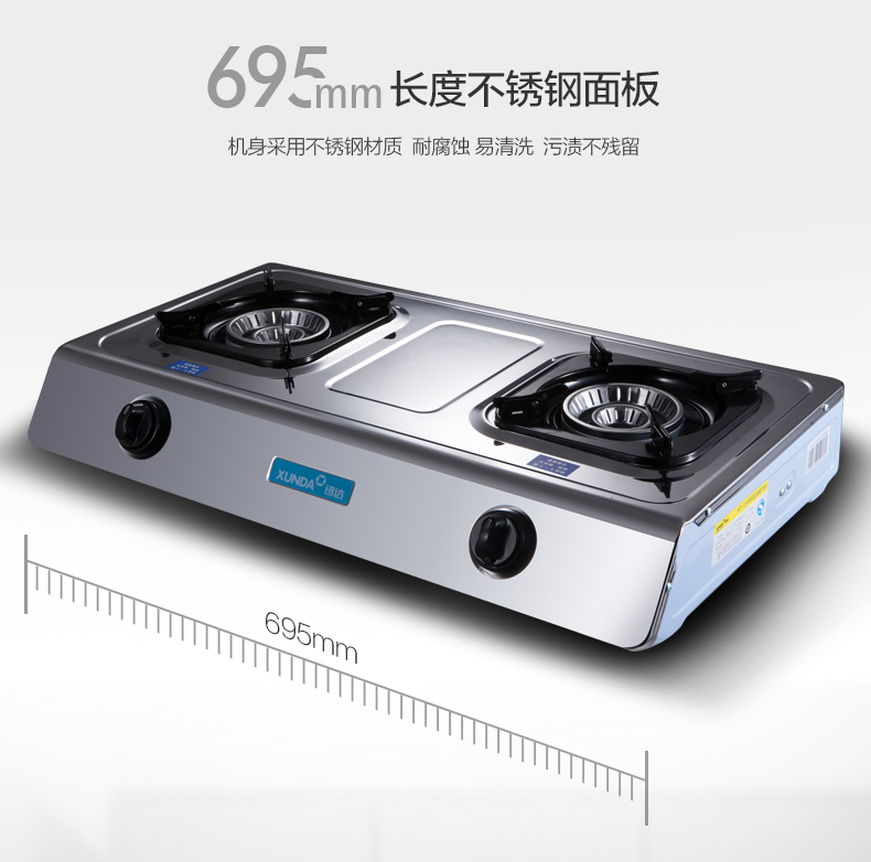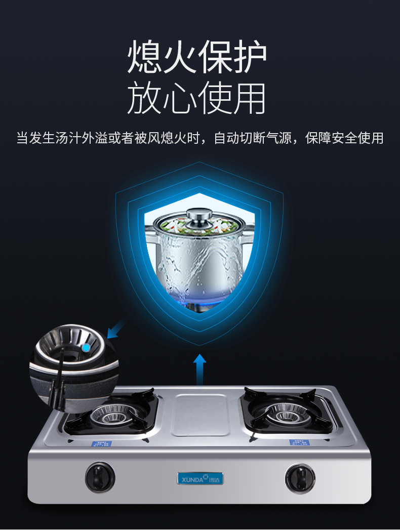 迅达(XUNDA)台式不锈钢双灶 一级能效 熄火保护 压电陶瓷点火JZY-2.N5-GHB(液化气天然气)