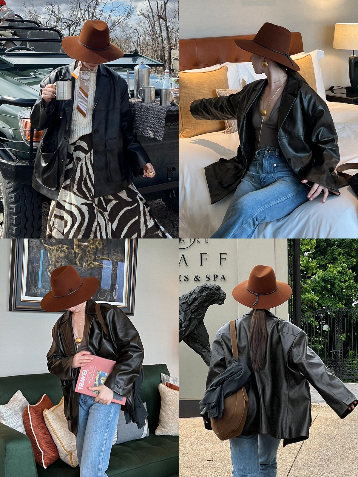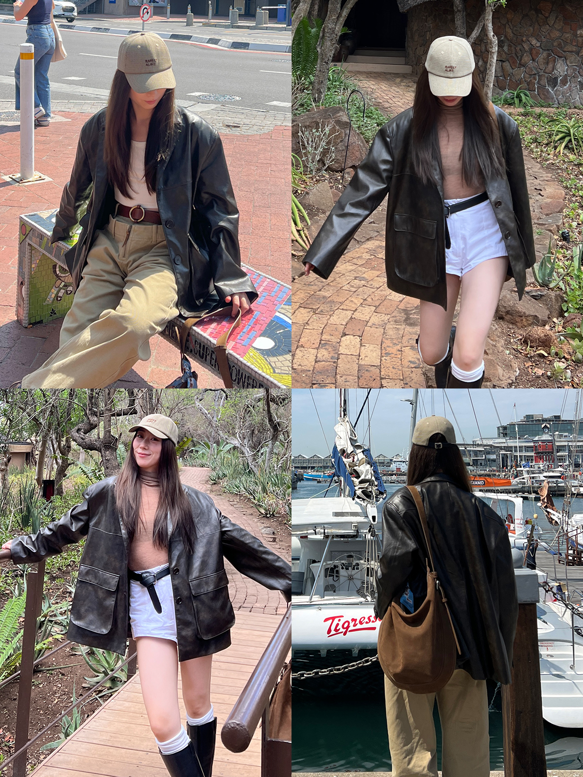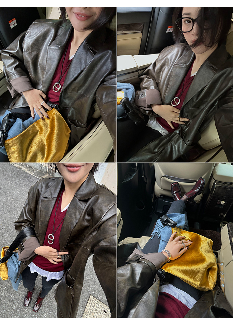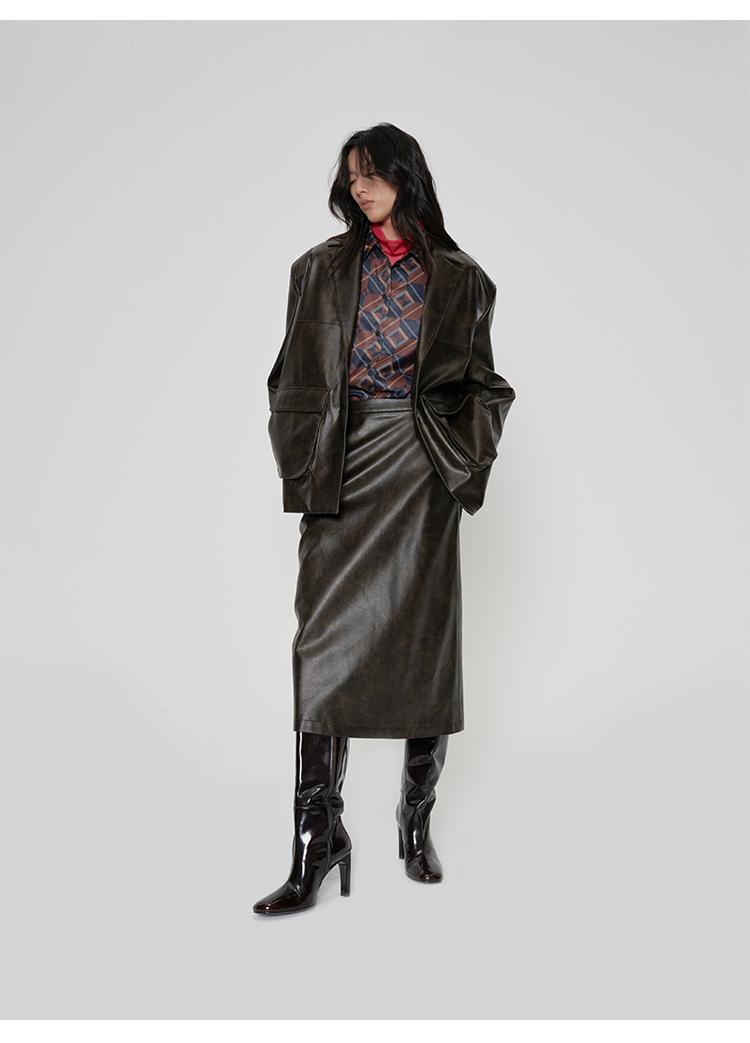 HIDEMI 【吴千语同款】甄选复古水洗擦色感环保蛋白皮工装感立体大口袋西装外套皮衣