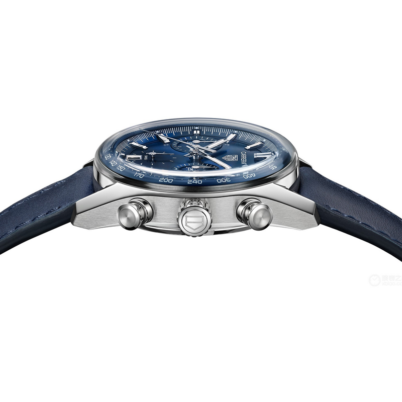 镜面 材质 | 蓝宝石水晶玻璃 | 表盘 | 精细蓝色环形磨砂表盘,蓝色表盘外缘,饰以60秒/分钟刻度和测速刻度。三个子表盘:3 点钟位置:蓝色 “azuré” 分钟盘;镀铑指针;6点钟位置:蓝色小秒盘;镀铑指针;9点钟位置:蓝色 “azuré” 小时盘;镀铑指针;镀铑刻面时针和分针,覆以绿色Super-LumiNova®荧光涂料;镀铑中央秒针 日期显示 计时 |