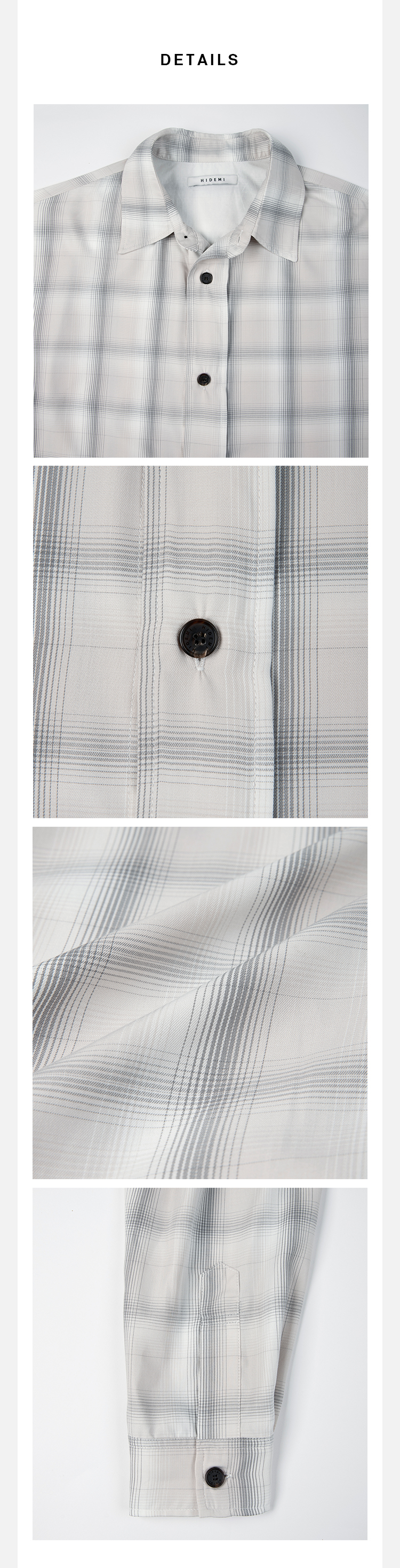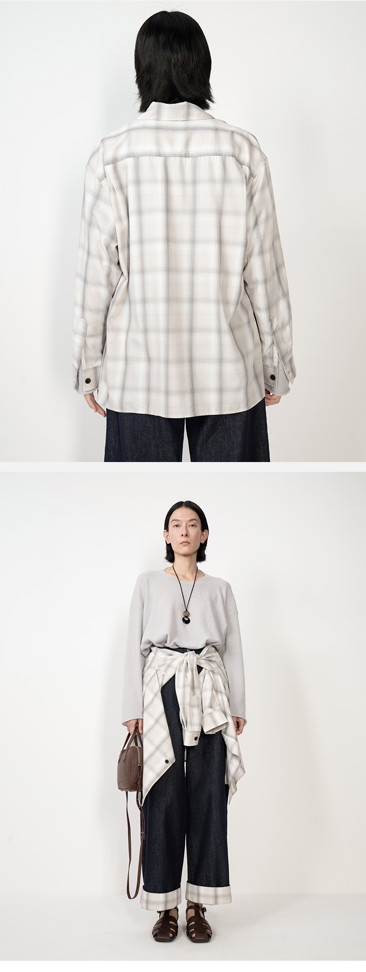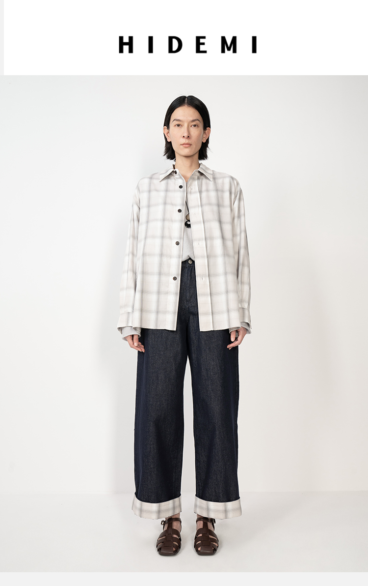 HIDEMI 浅灰系格纹口袋廓形极简宽松版衬衫
