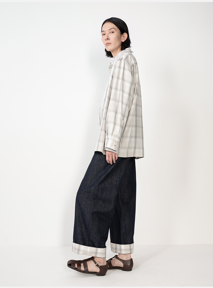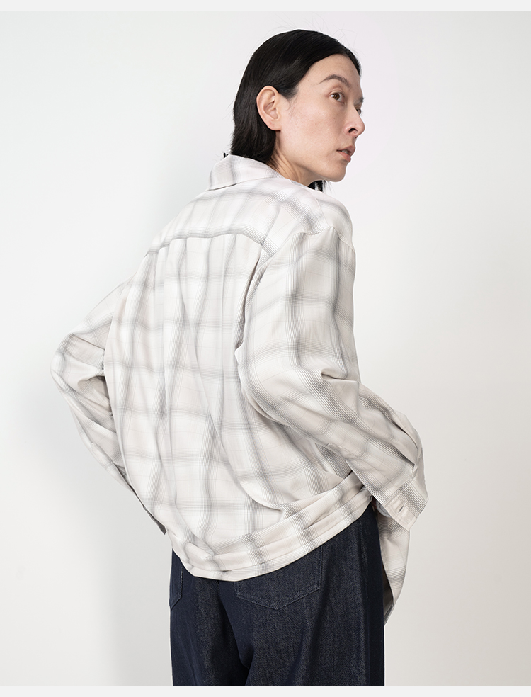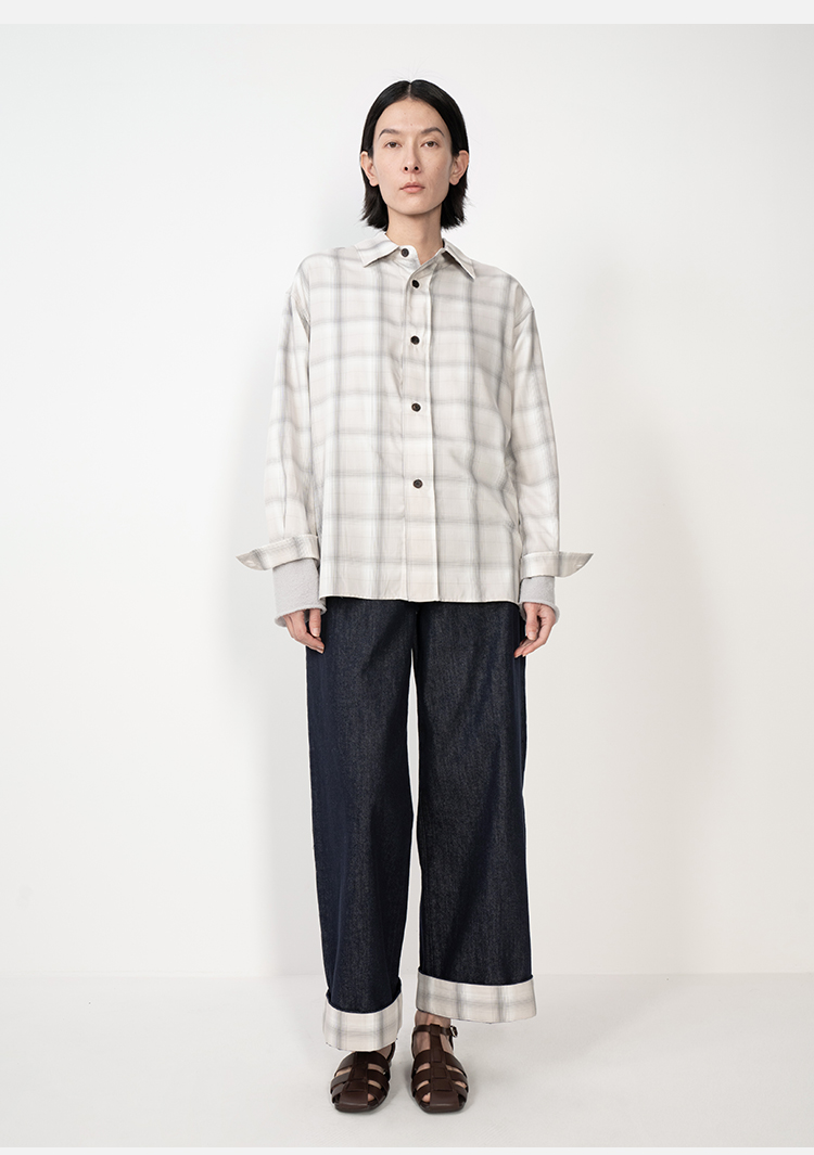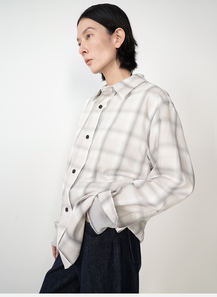 HIDEMI 浅灰系格纹口袋廓形极简宽松版衬衫