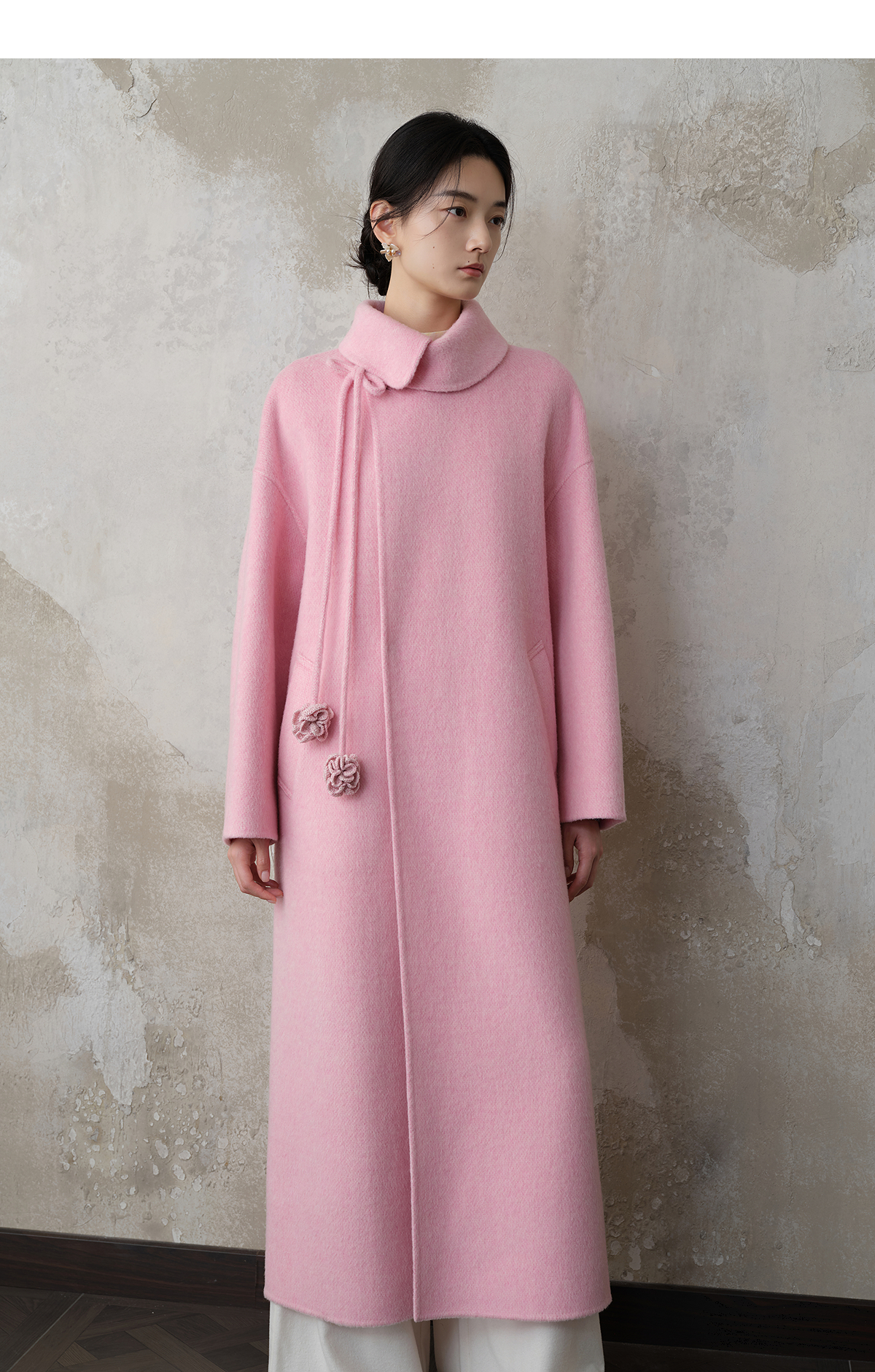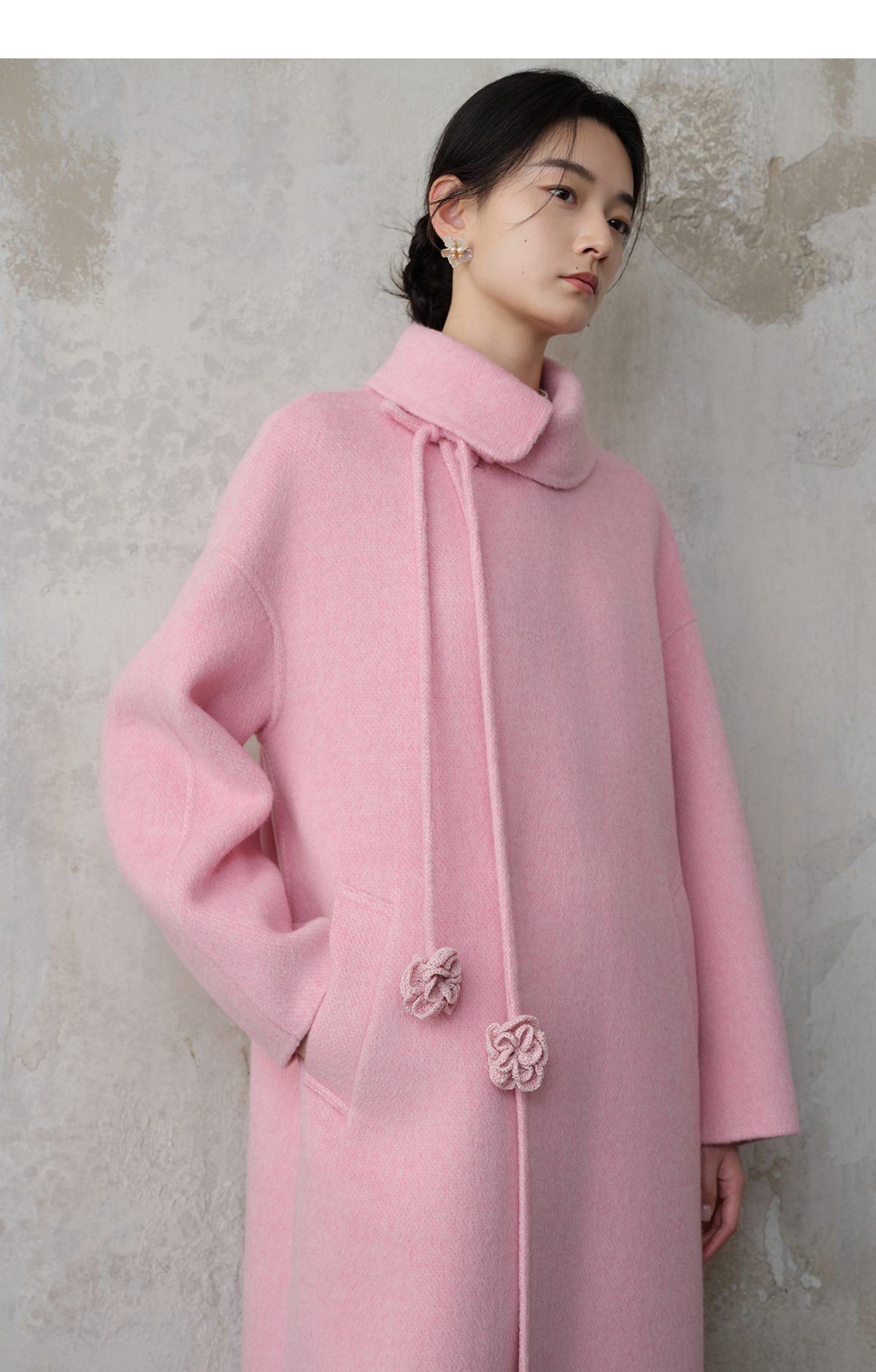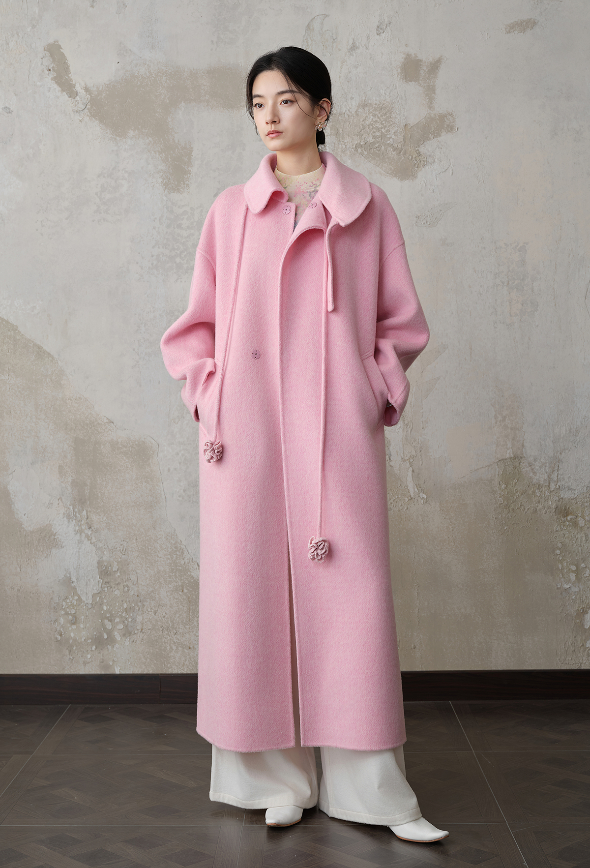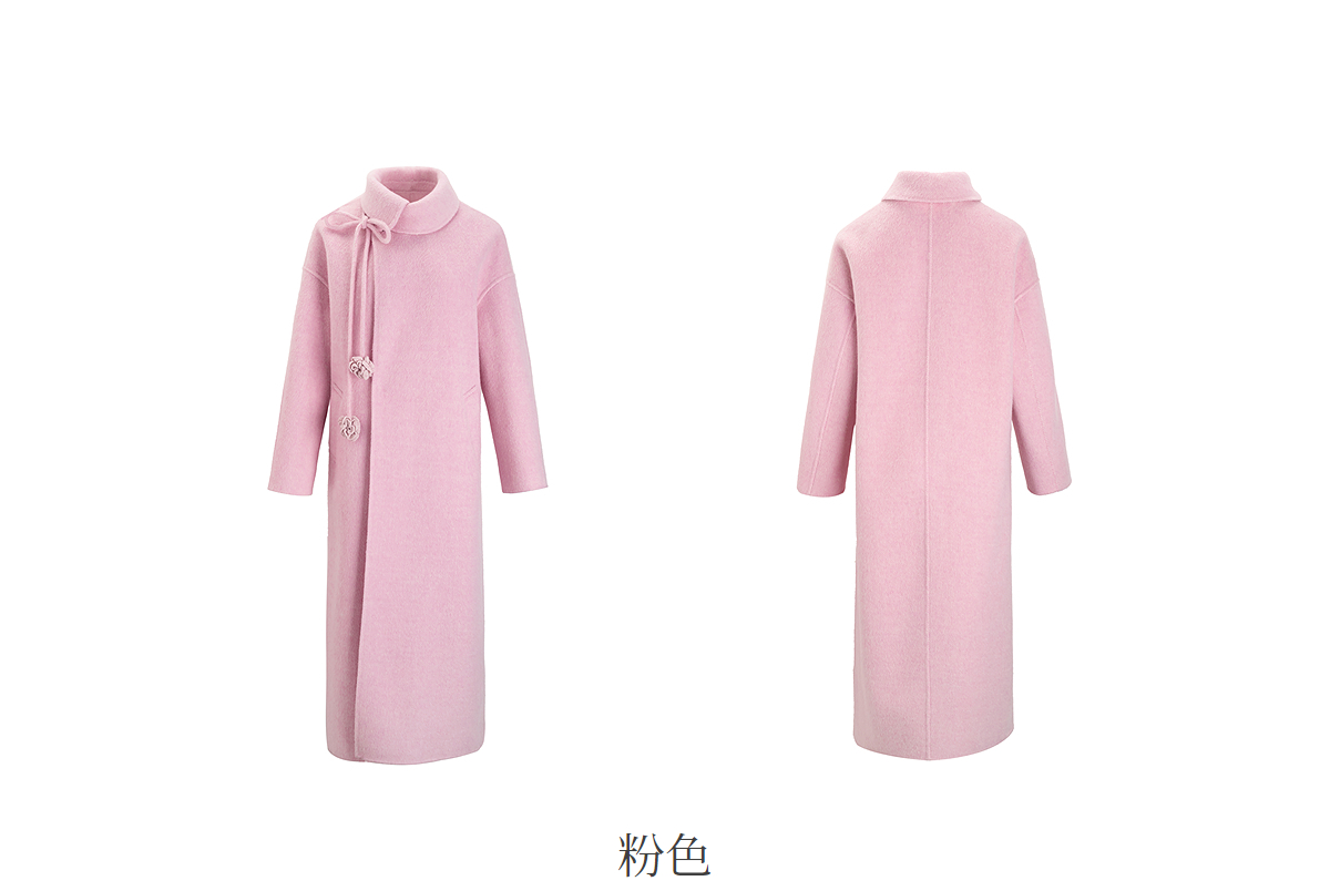 【林栖设计小店】双面呢外套围裹式优雅粉色2025秋冬新款长款毛呢大衣女1954070