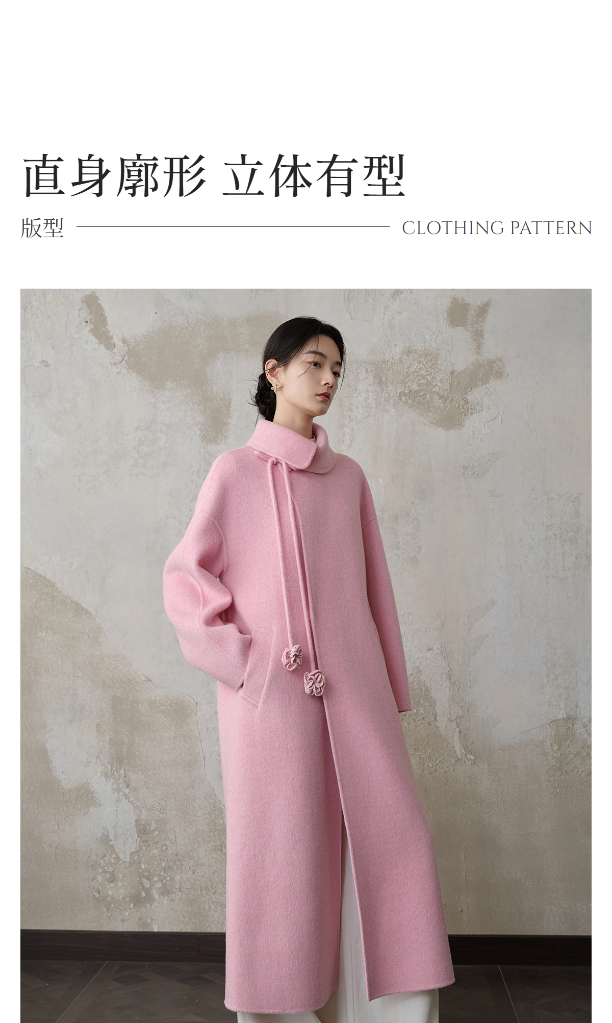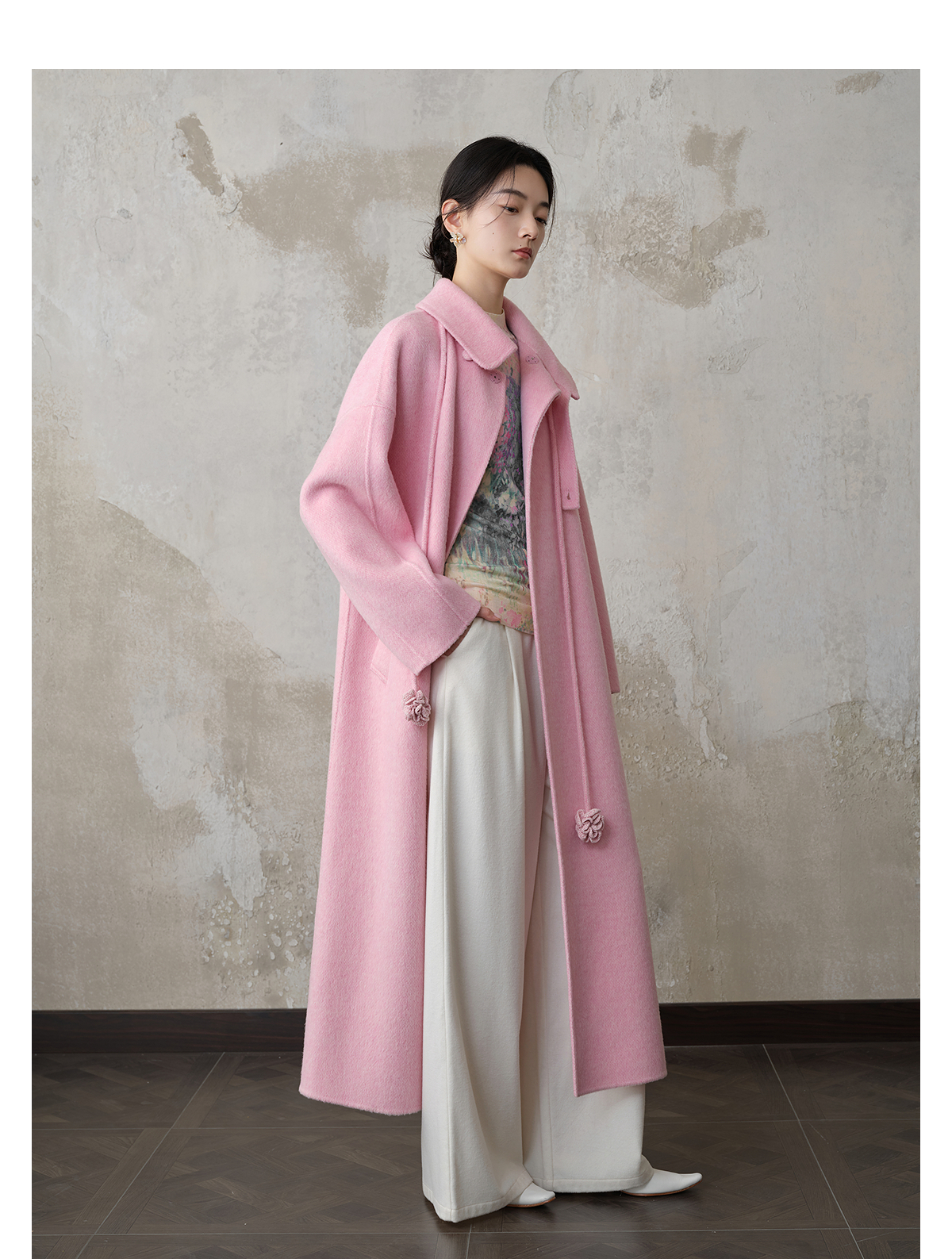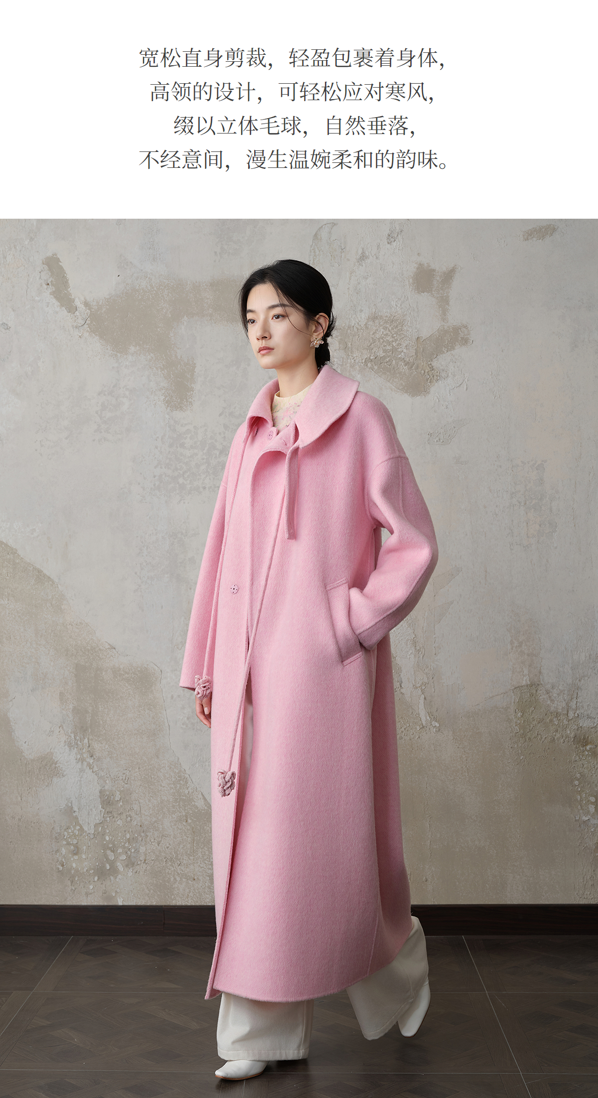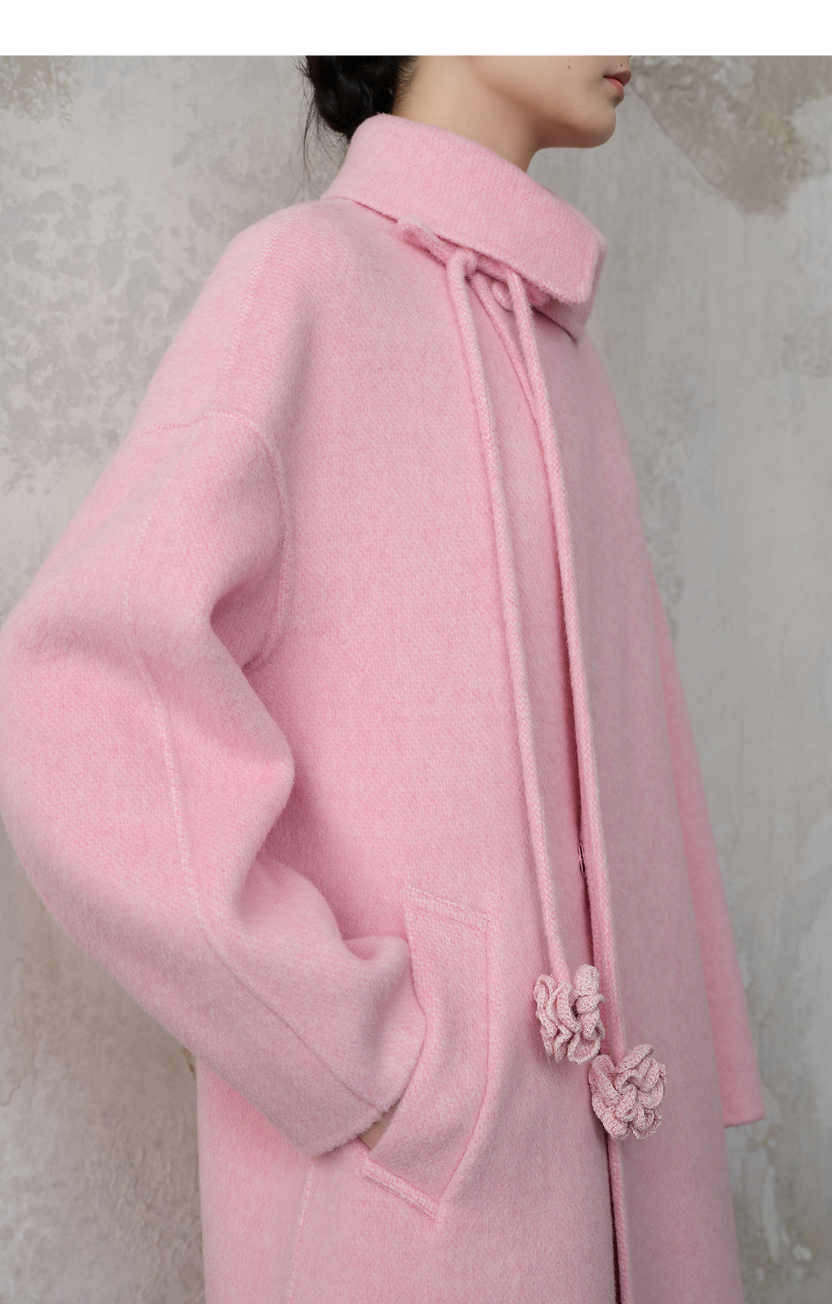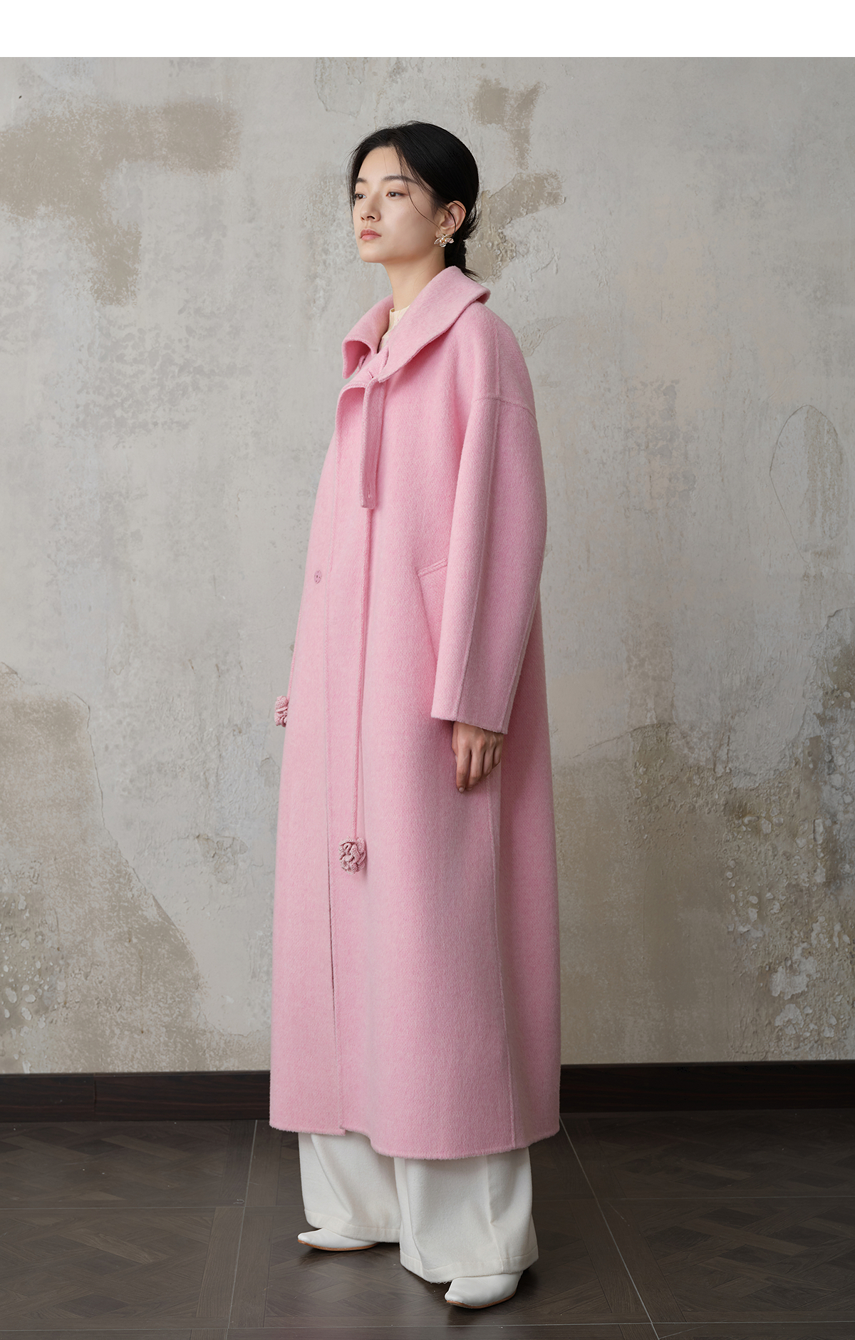 【林栖设计小店】双面呢外套围裹式优雅粉色2025秋冬新款长款毛呢大衣女1954070