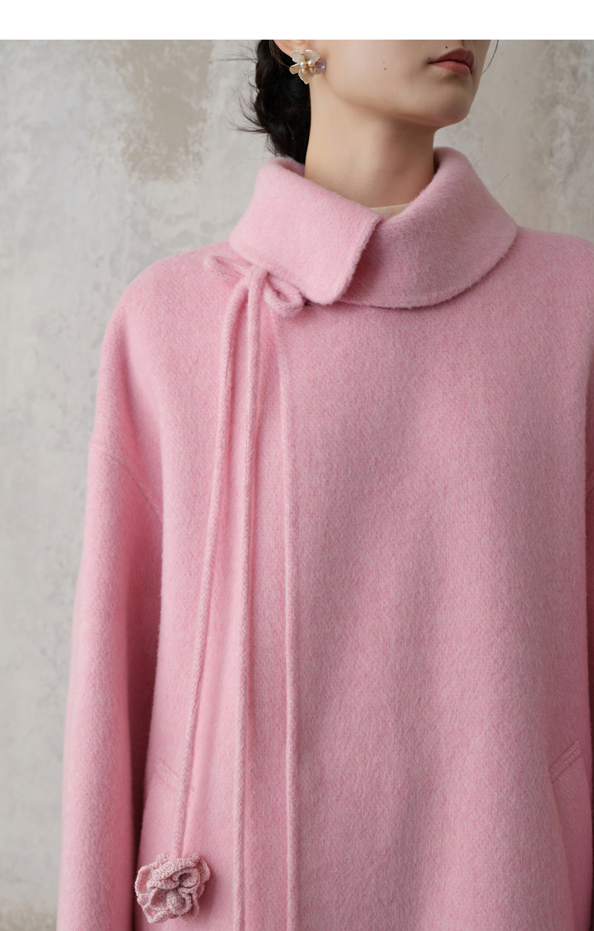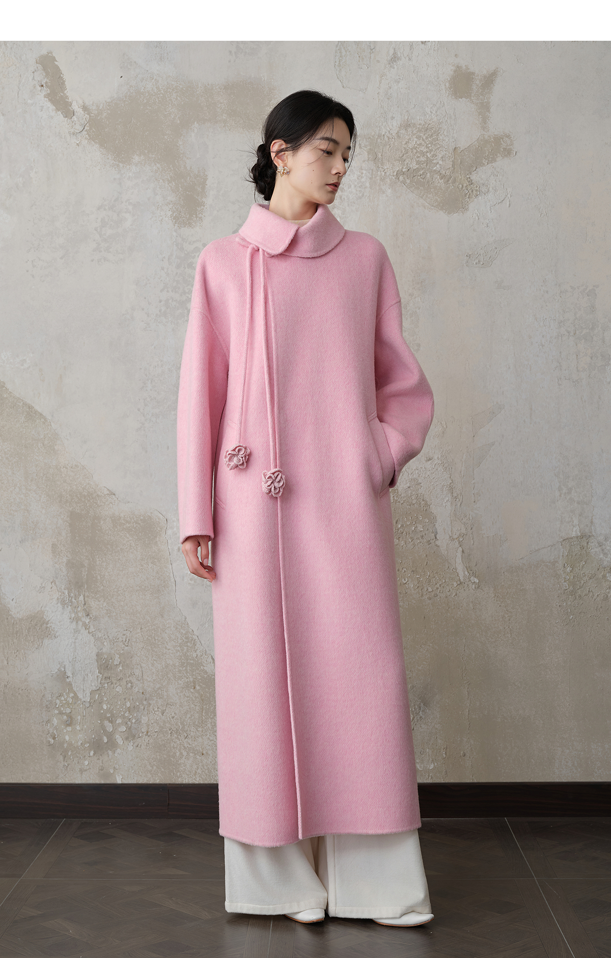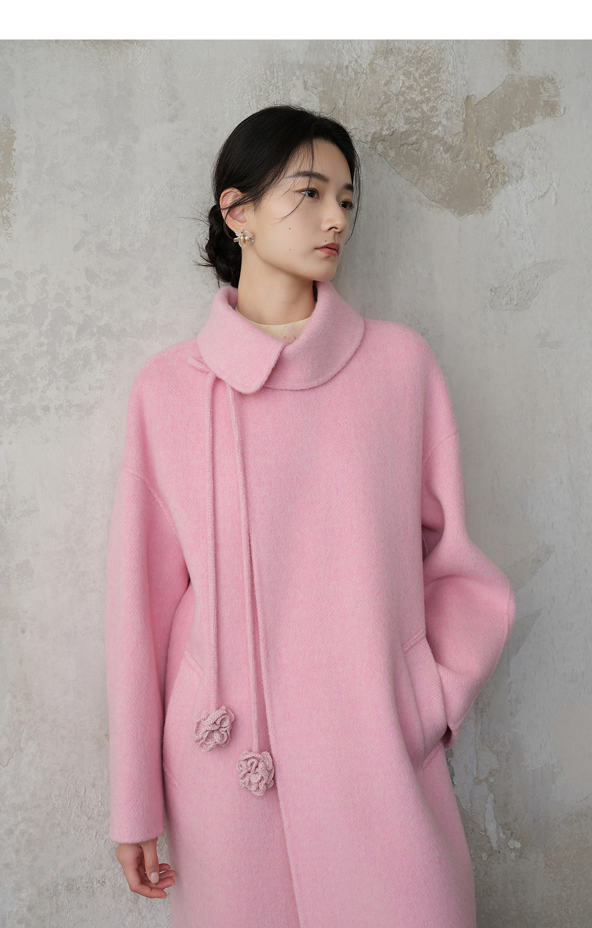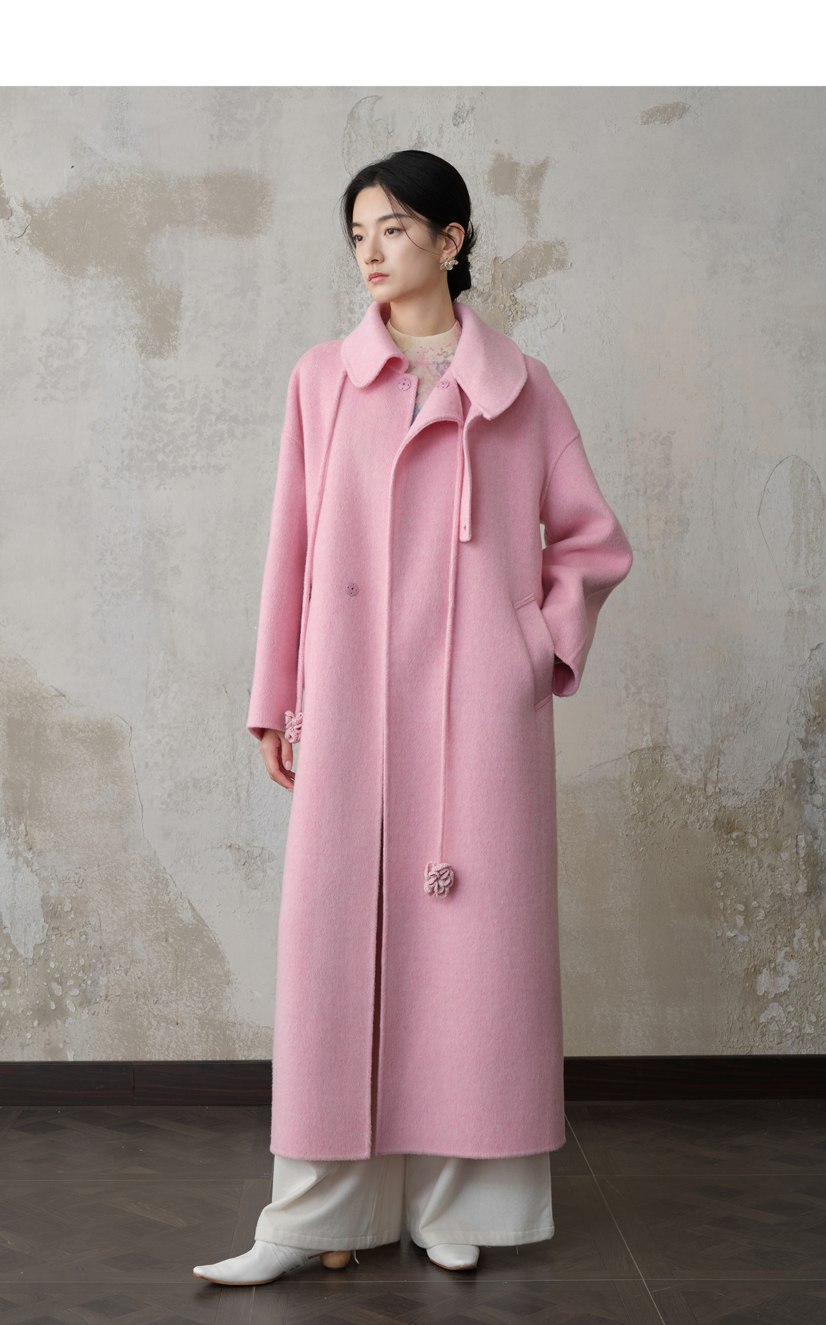【林栖设计小店】双面呢外套围裹式优雅粉色2025秋冬新款长款毛呢大衣女1954070