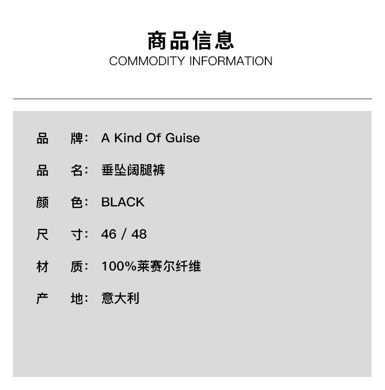 A Kind Of Guise WIDE TROUSERS 意大利天丝面料男装垂坠阔腿裤