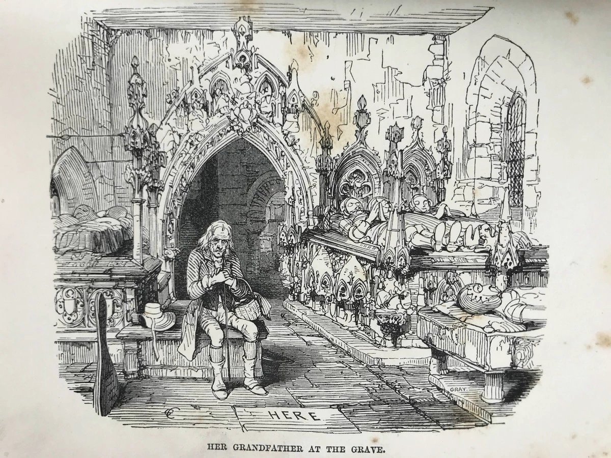 约19世纪后期 狄更斯《老古玩店》 8幅插图 真皮精装36开