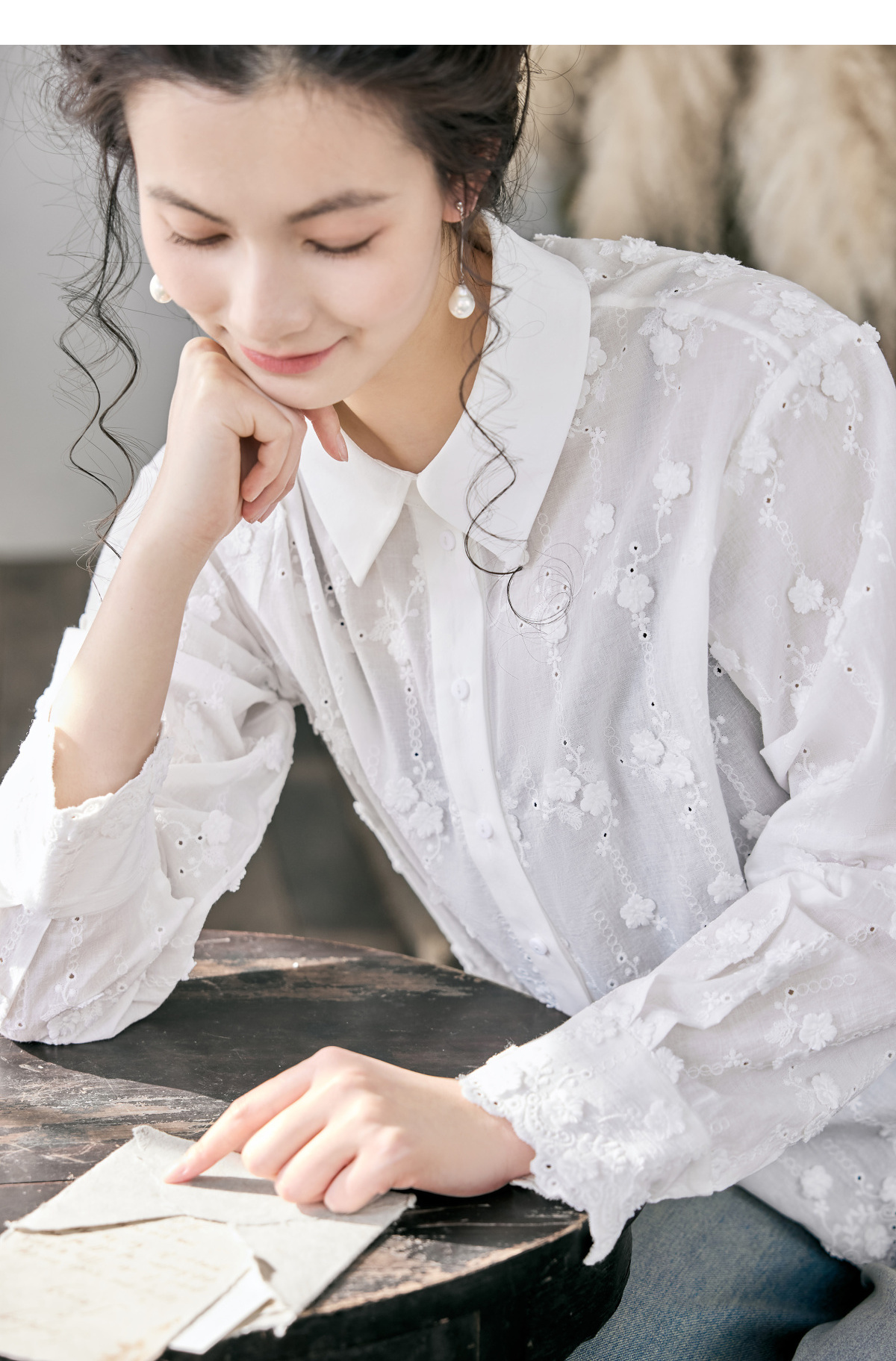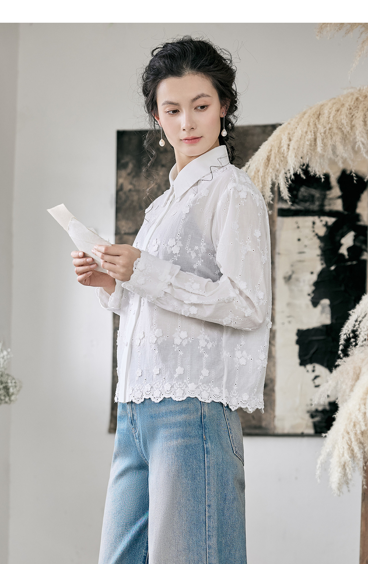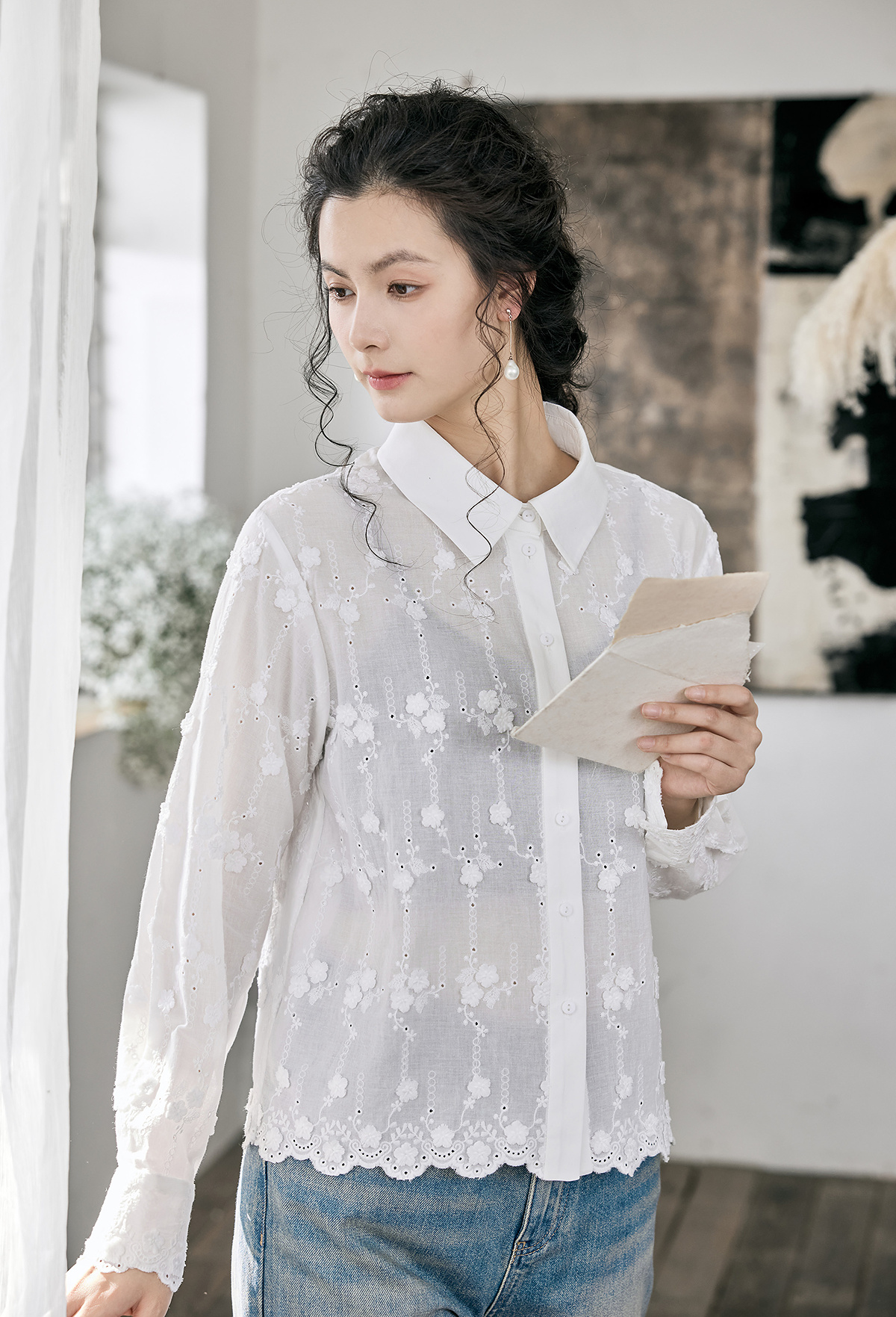 【林栖设计小店】2025春夏新品棉混纺花边绣花长袖白衬衣女1952167
