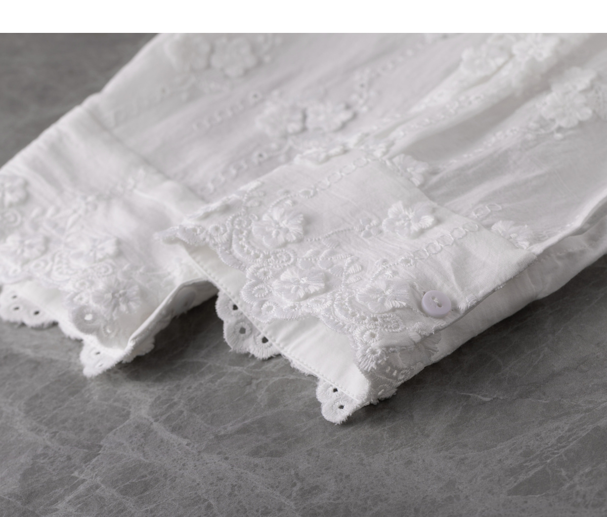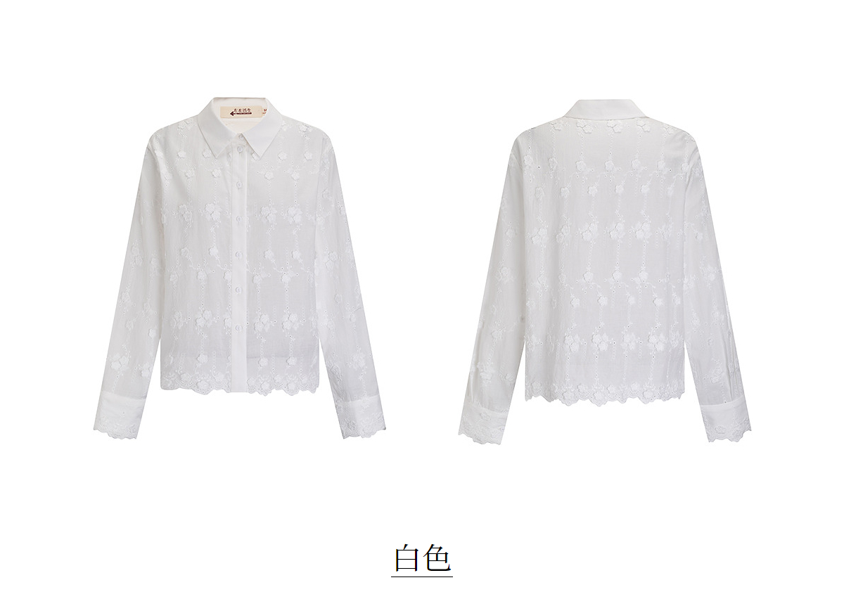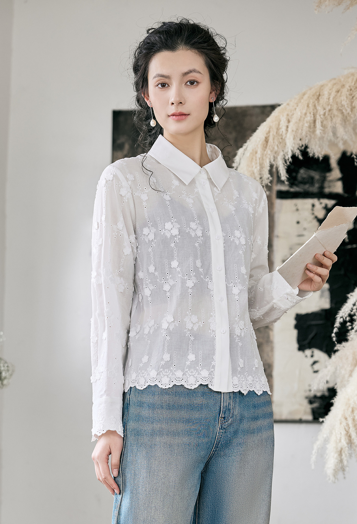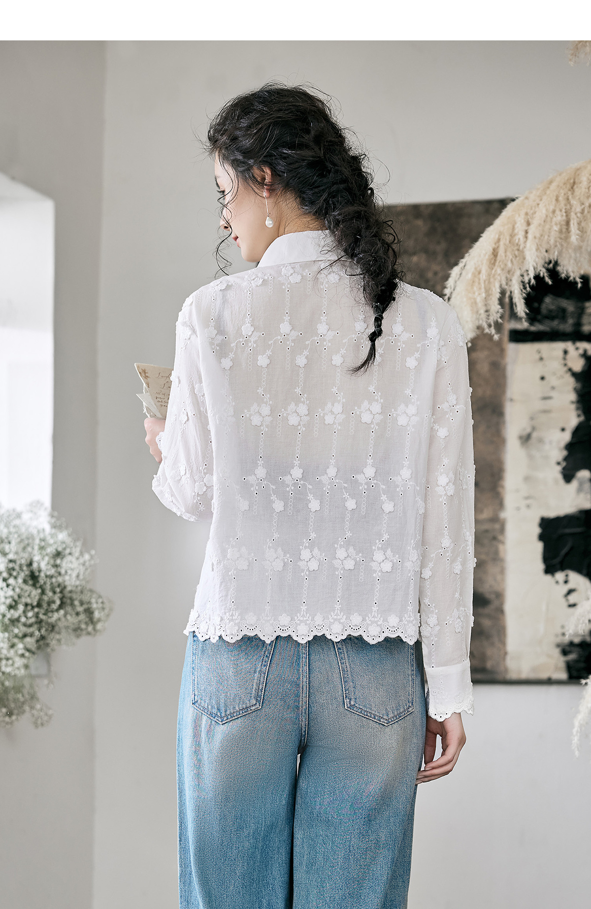 【林栖设计小店】2025春夏新品棉混纺花边绣花长袖白衬衣女1952167