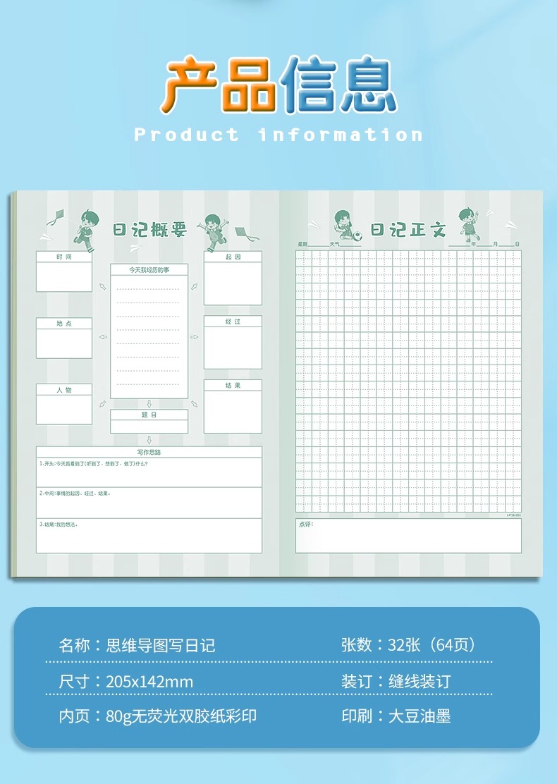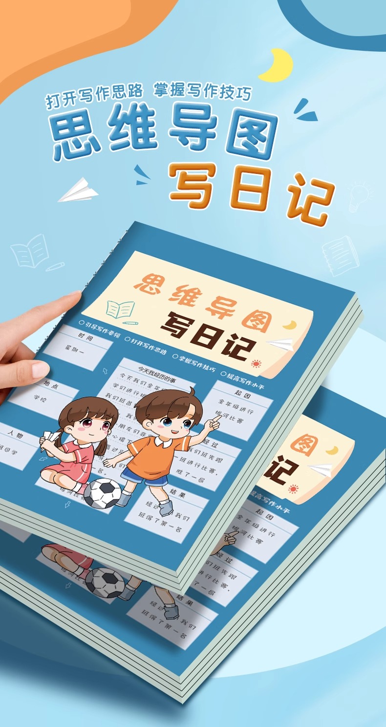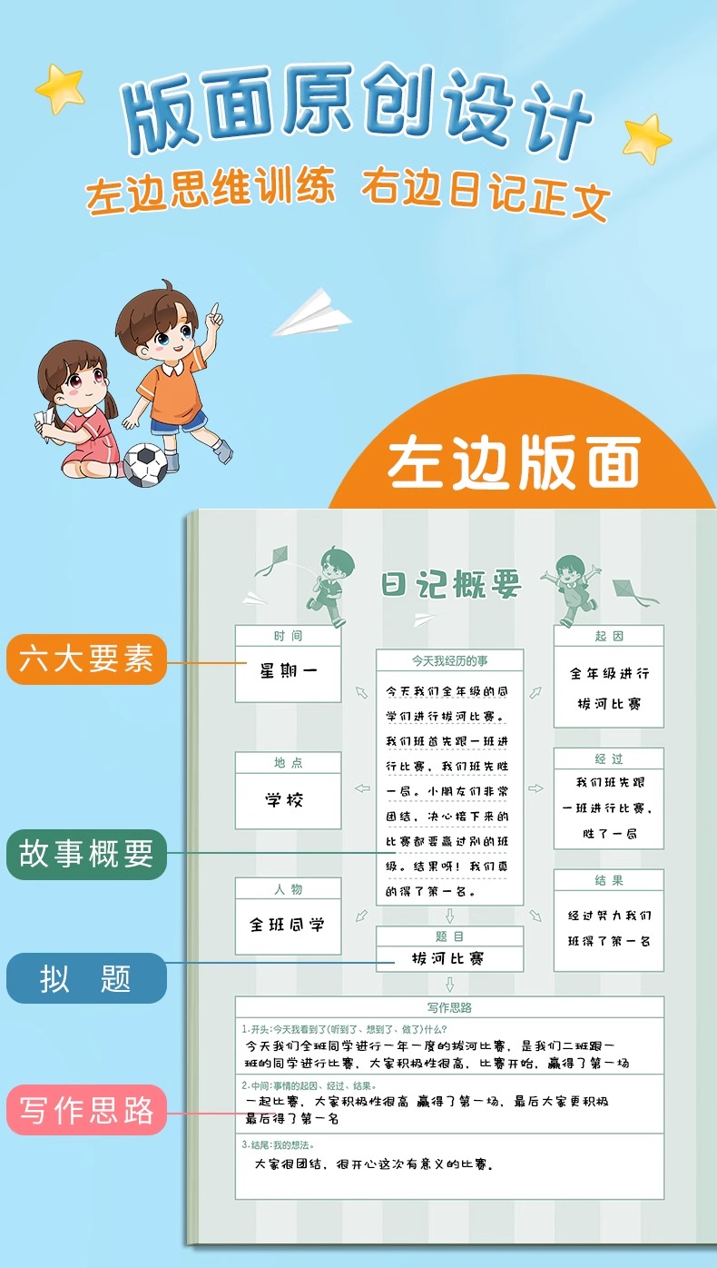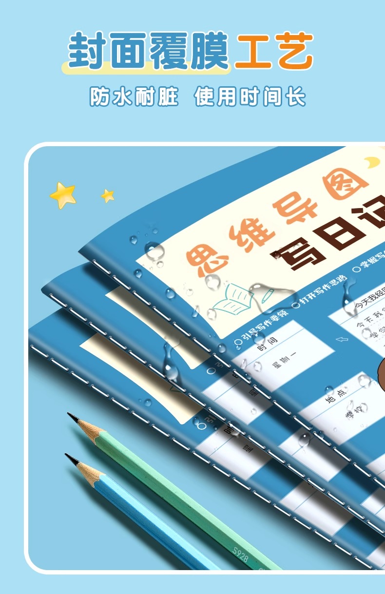 开学福利!【轻松写日记】10本装思维导图日记本A5小学生专用作文本周记本加厚语文阅读摘抄记事本