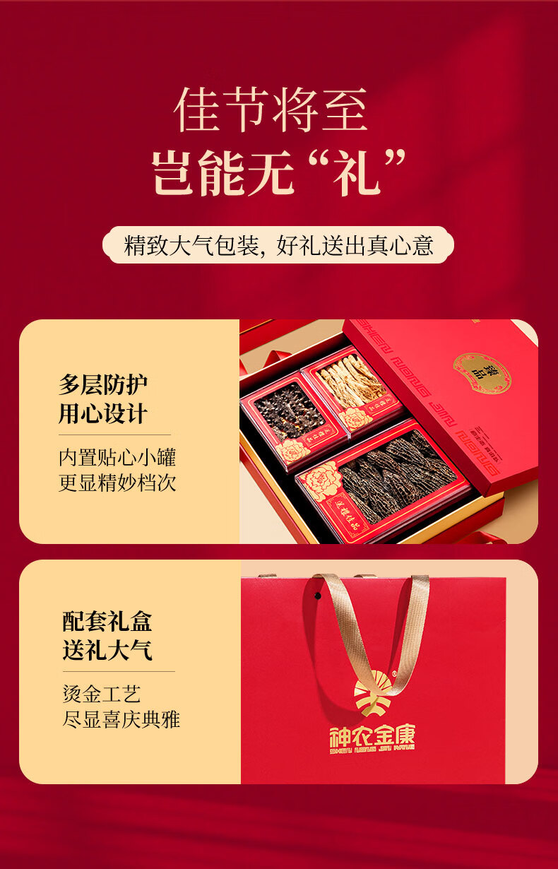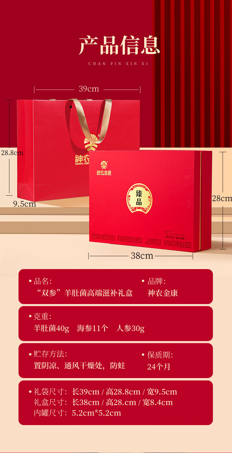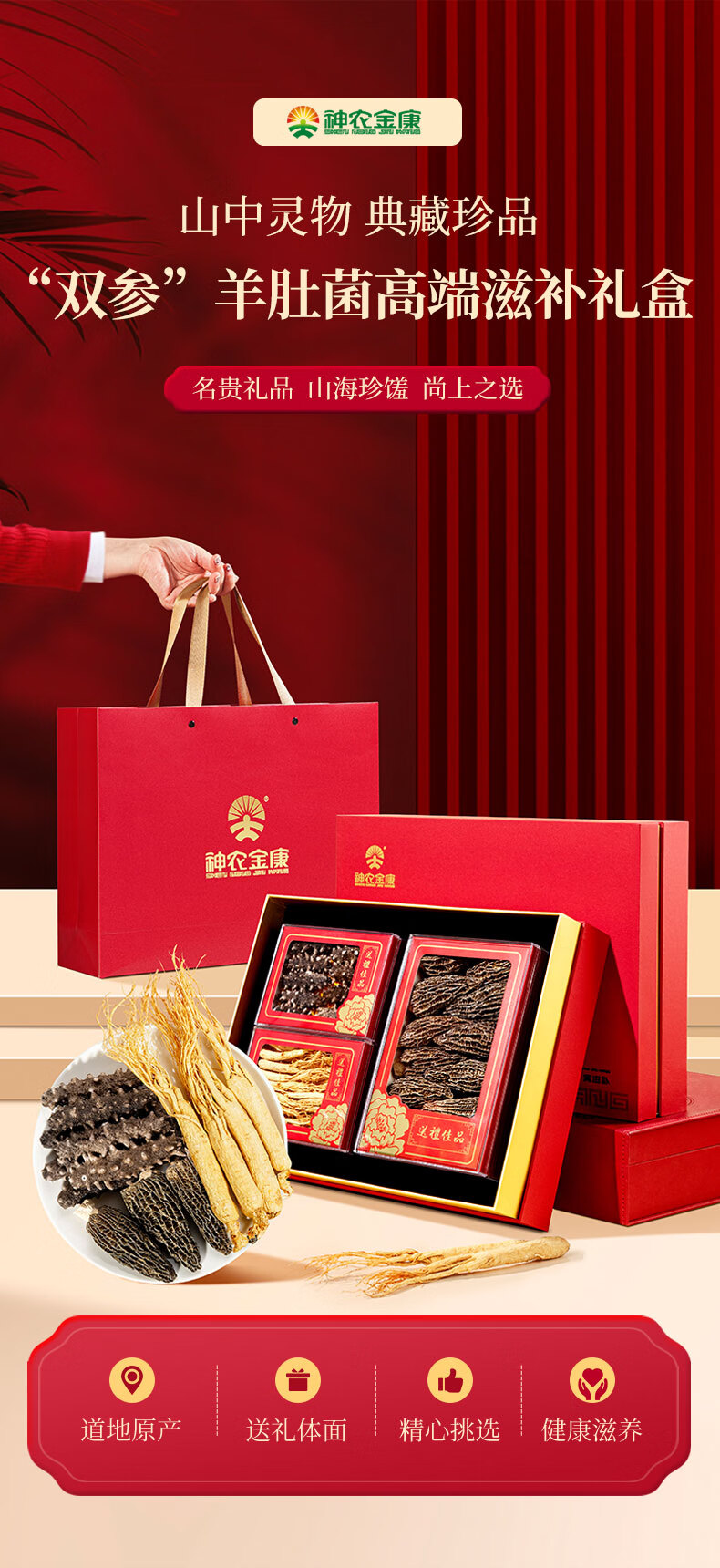 【中秋礼盒】神农金康 海参 人参 羊肚菌礼盒83克 新中式滋补礼
