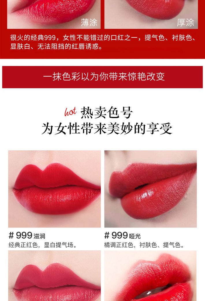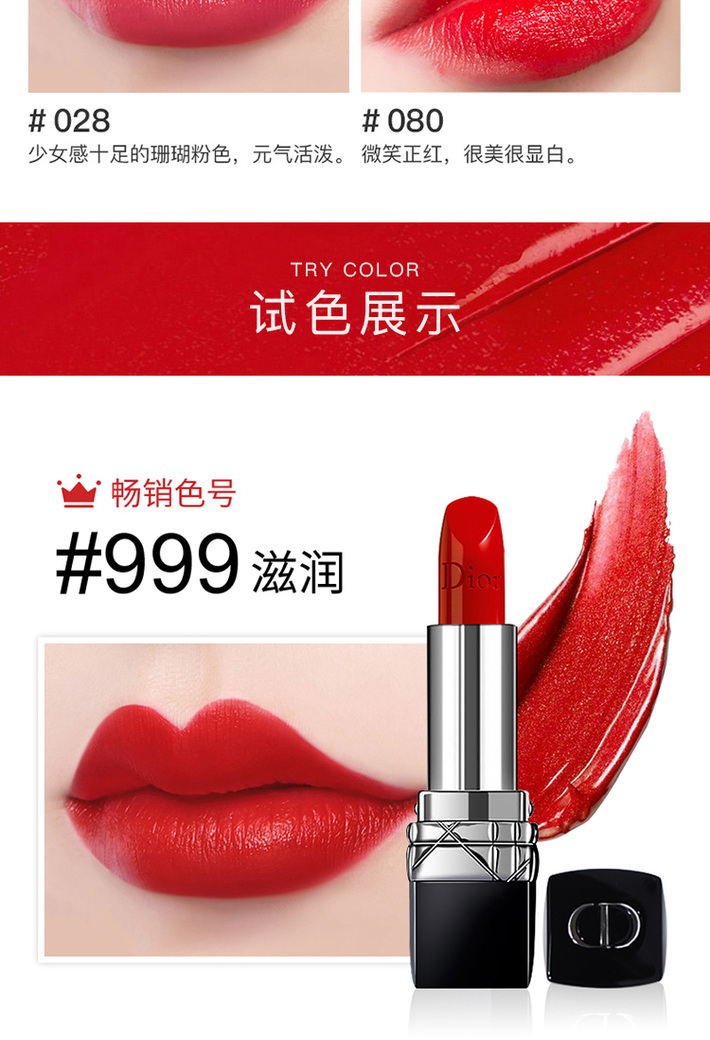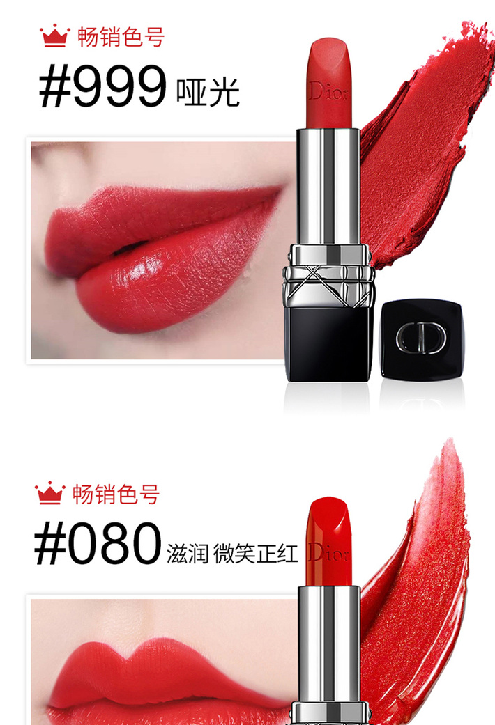DIOR迪奥烈艳蓝金持色口红唇膏3.5g#999滋润#999哑光#888哑光 经典正红复古显白保湿滋润