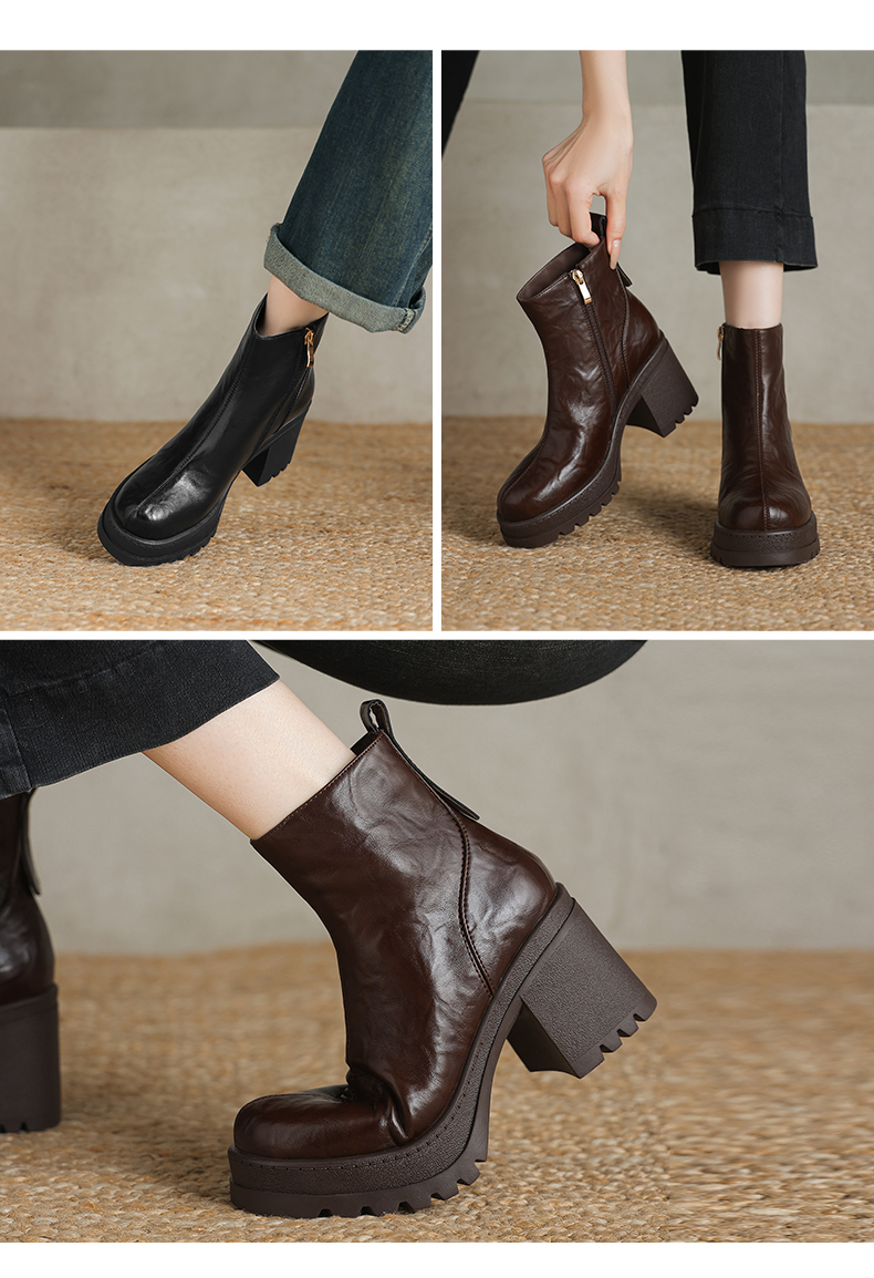 阿么手工女鞋厚底防水台冬季加绒保暖短靴女新款复古时装靴子8CM